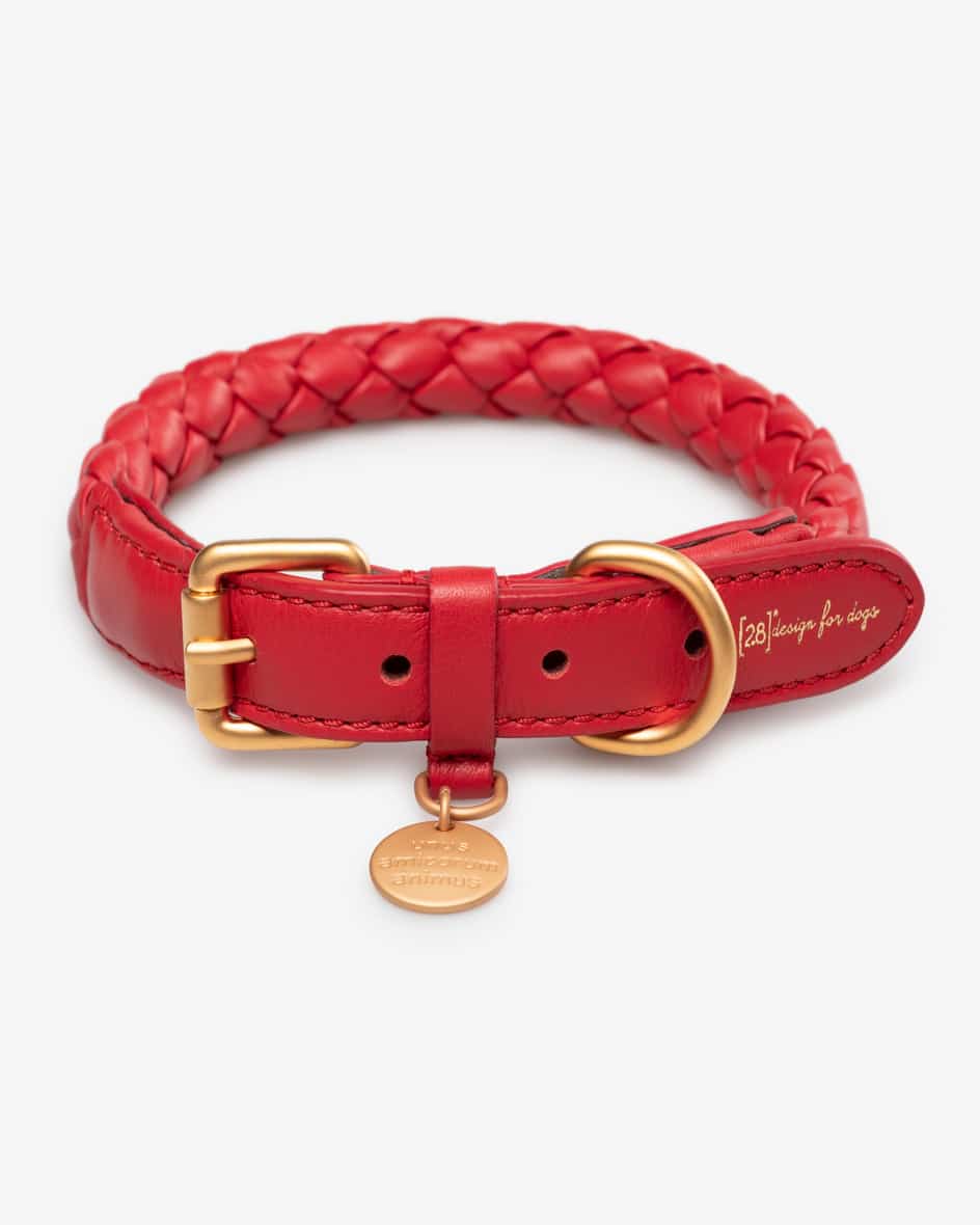 Ferdinando Hundehalsband von 2.8 Duepuntootto in Rot und Gold. Das Modell präsentiert sich dank des geflochtenen Designs als modisches Accessoire für Ihren Vierbeiner, während das glatte Nappaleder eine hochwertige Haptik verspricht.