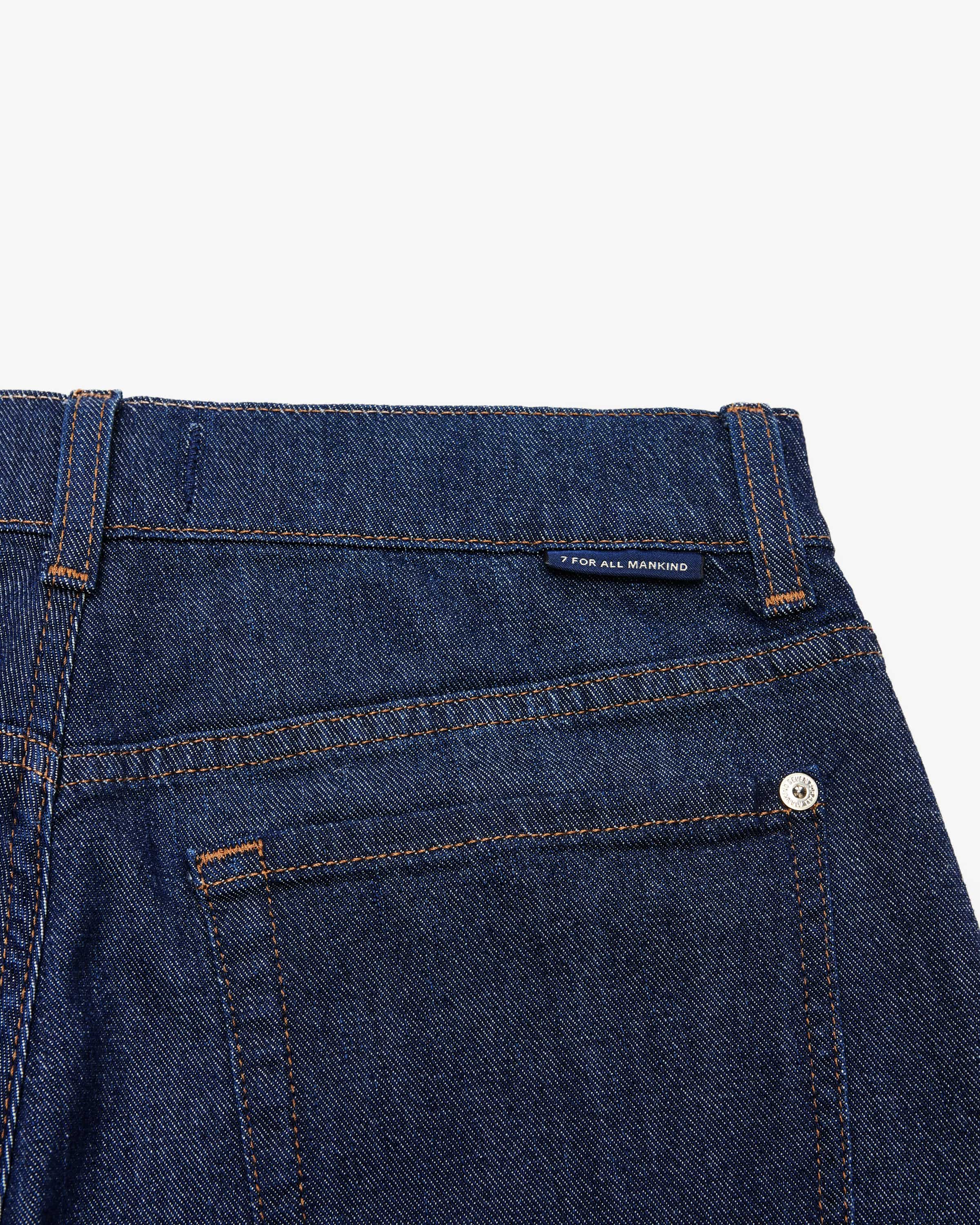 Jeans Lotta Tailorless für Damen von 7 for All Mankind in Dunkelblau. Das kalifornische Label gehört zu den Denim-Pionieren im Premiumsegment – bekannt für innovative Waschungen und perfekte Fits. Auch dieses Modell besticht dank hochwertigem Baumwoll-Denim-Mix mit einem angenehmen Tragegefühl, während die aufgesetzten Taschen und die ausgestellte Silhouette ein feminines Gesamtbild kreieren.