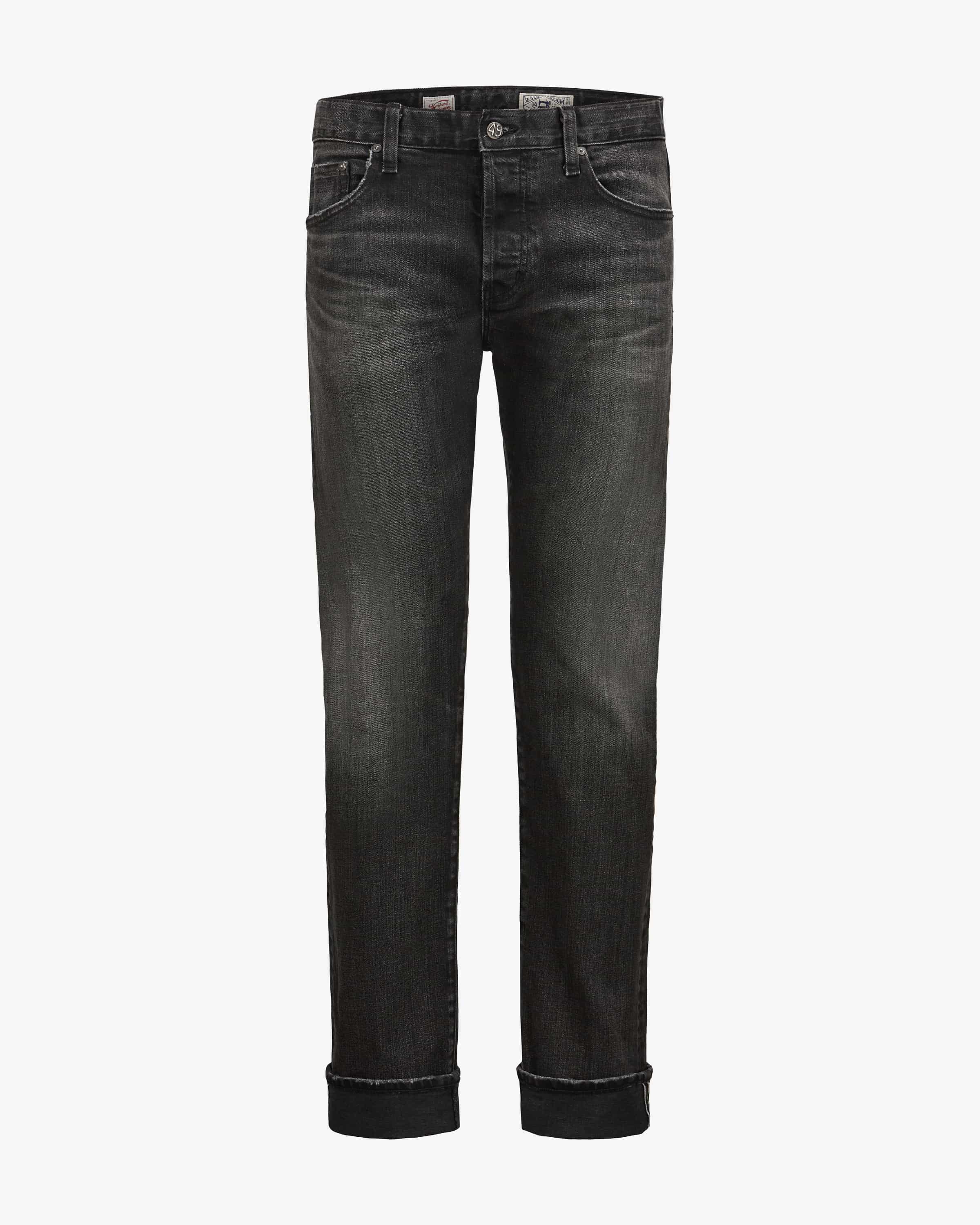 Jeans Tellis Modern Slim für Herren von AG Jeans in Schwarz. AG Jeans (Adriano Goldschmied) steht für Premium-Denim aus Kalifornien mit nachhaltigem Anspruch und urbanem Stil. Auch dieses Modell präsentiert sich dank modischer Waschung sowie feinen Destroyed-Details in maskuliner Denim-Aufmachung, während die angenehmen Stretch-Eigenschaft optimalen Tragekomfort verspricht. Dezente Logo- Details sowie Kontrast-Streifen am Bund und Hosenbein verleihen das gewisse Etwas.