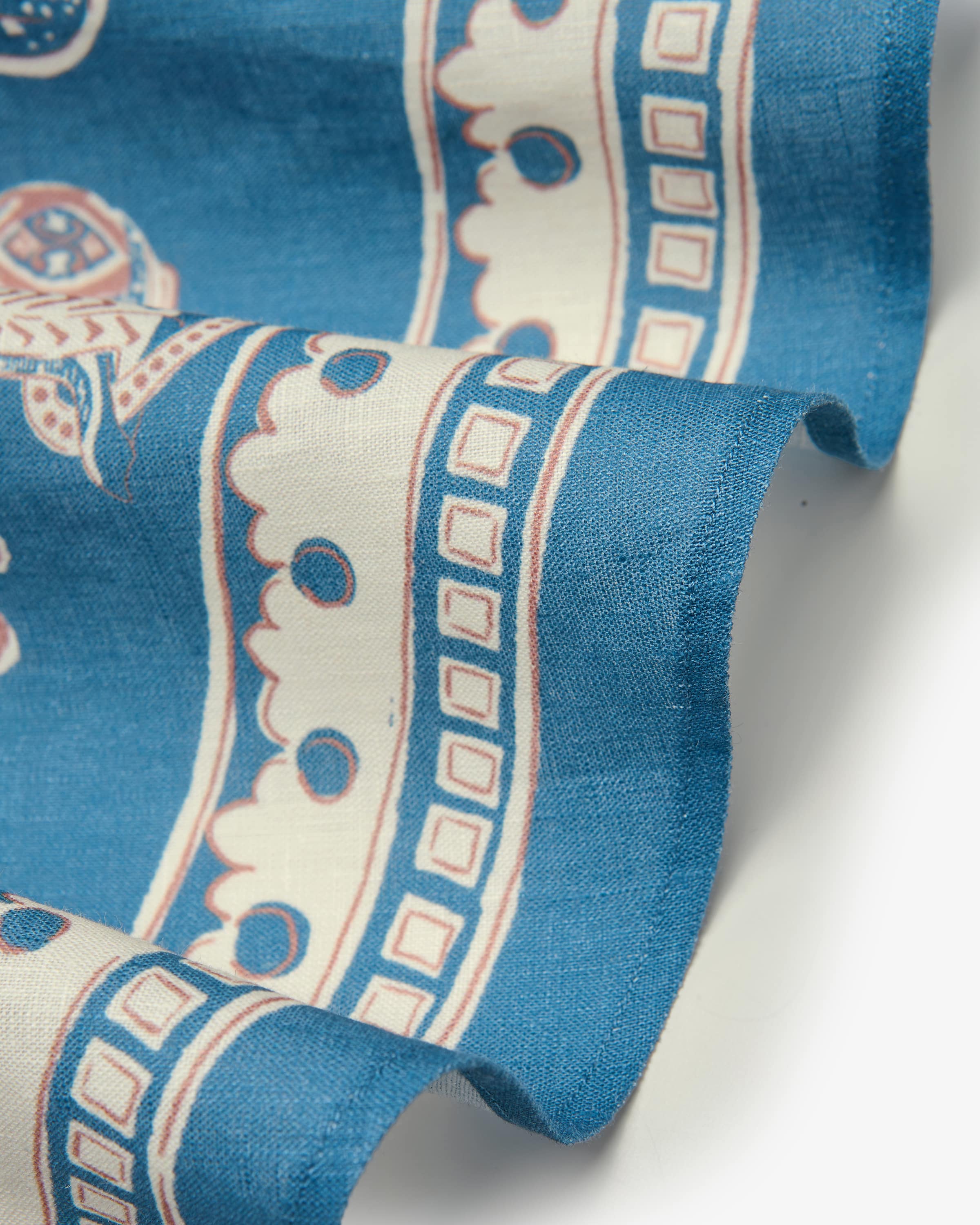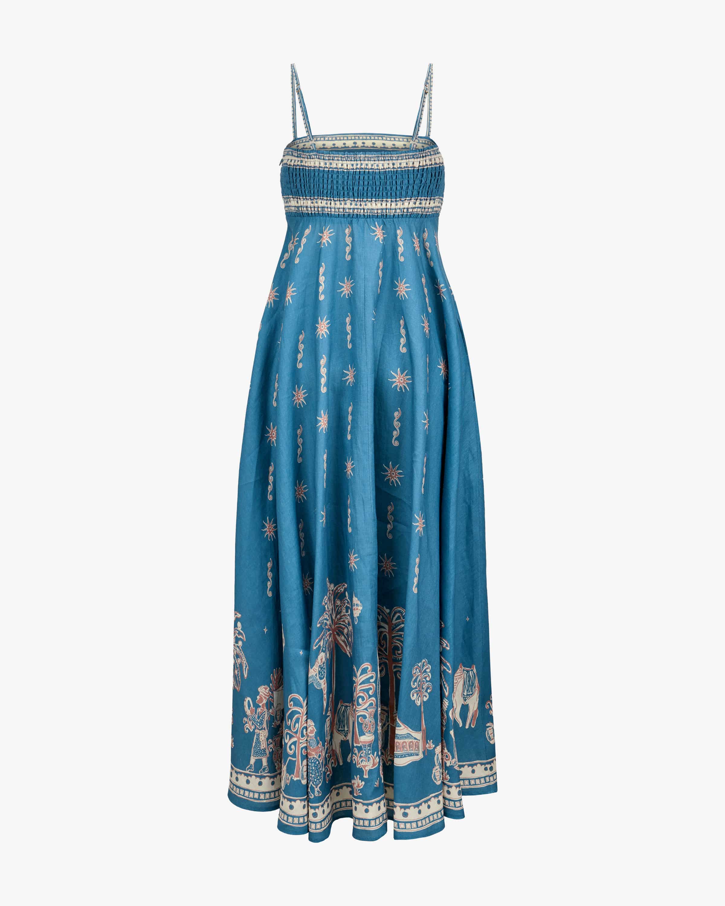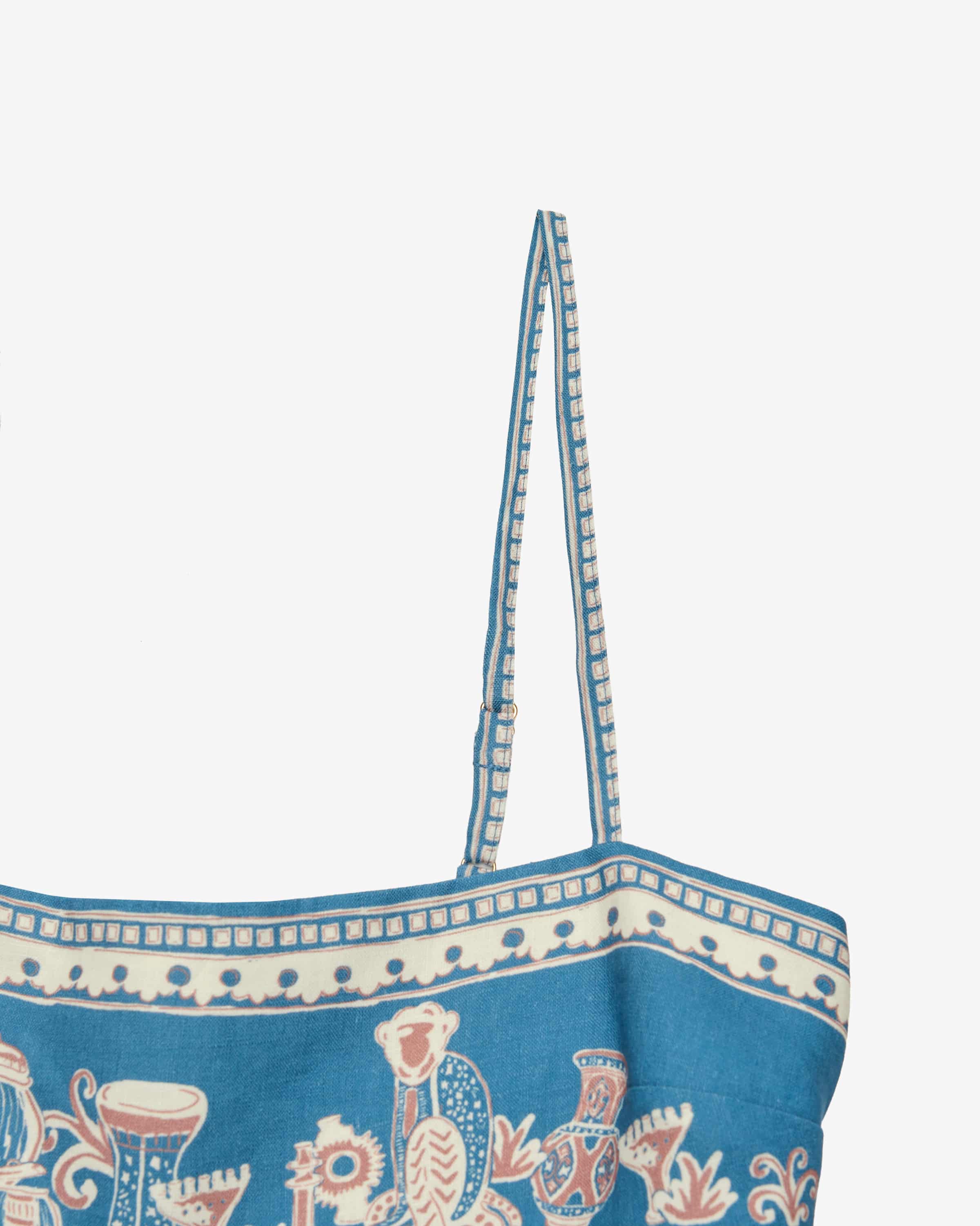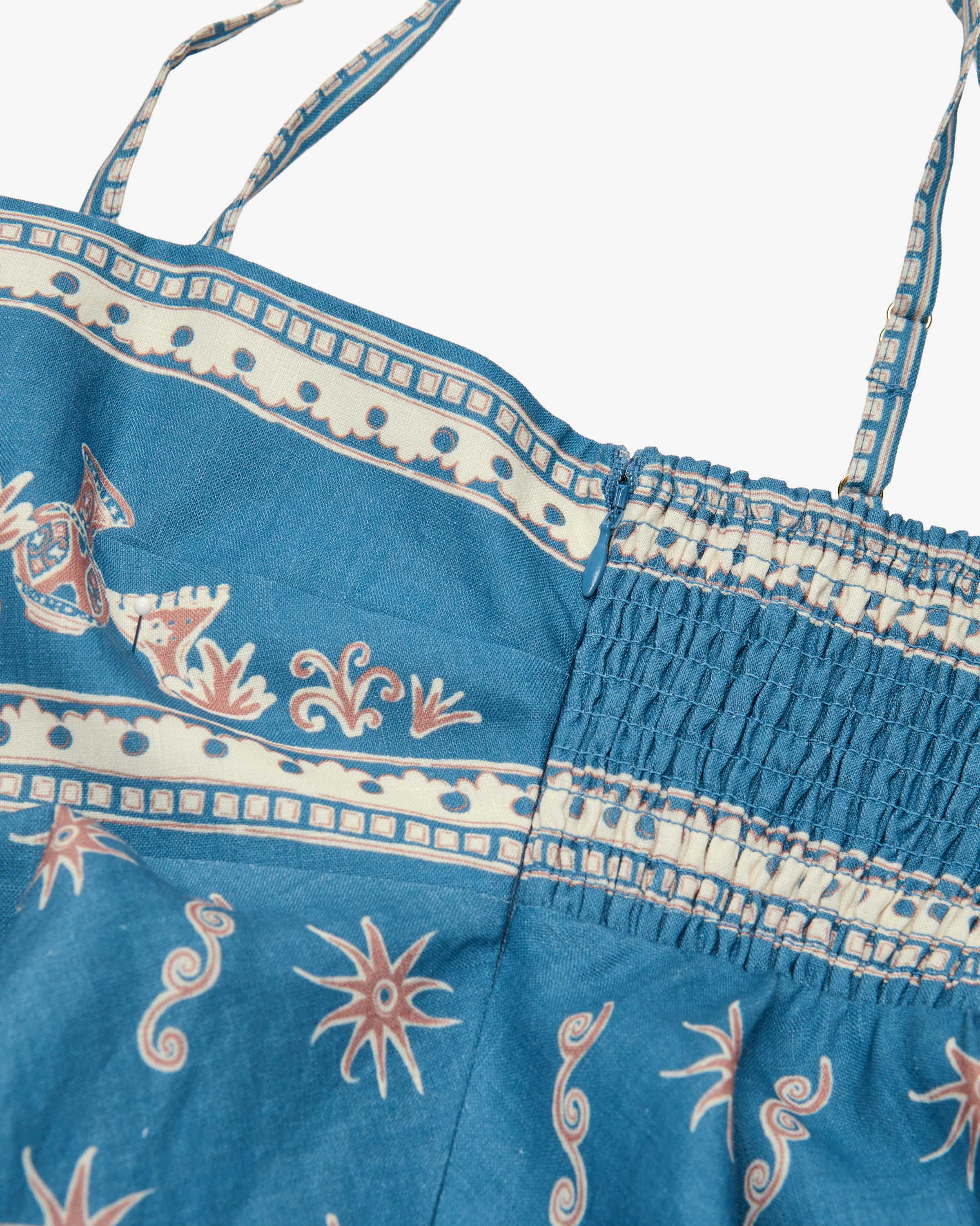 Acacia Sun Leinenkleid für Damen von Alémais in Blau, Weiß und Braun. Das