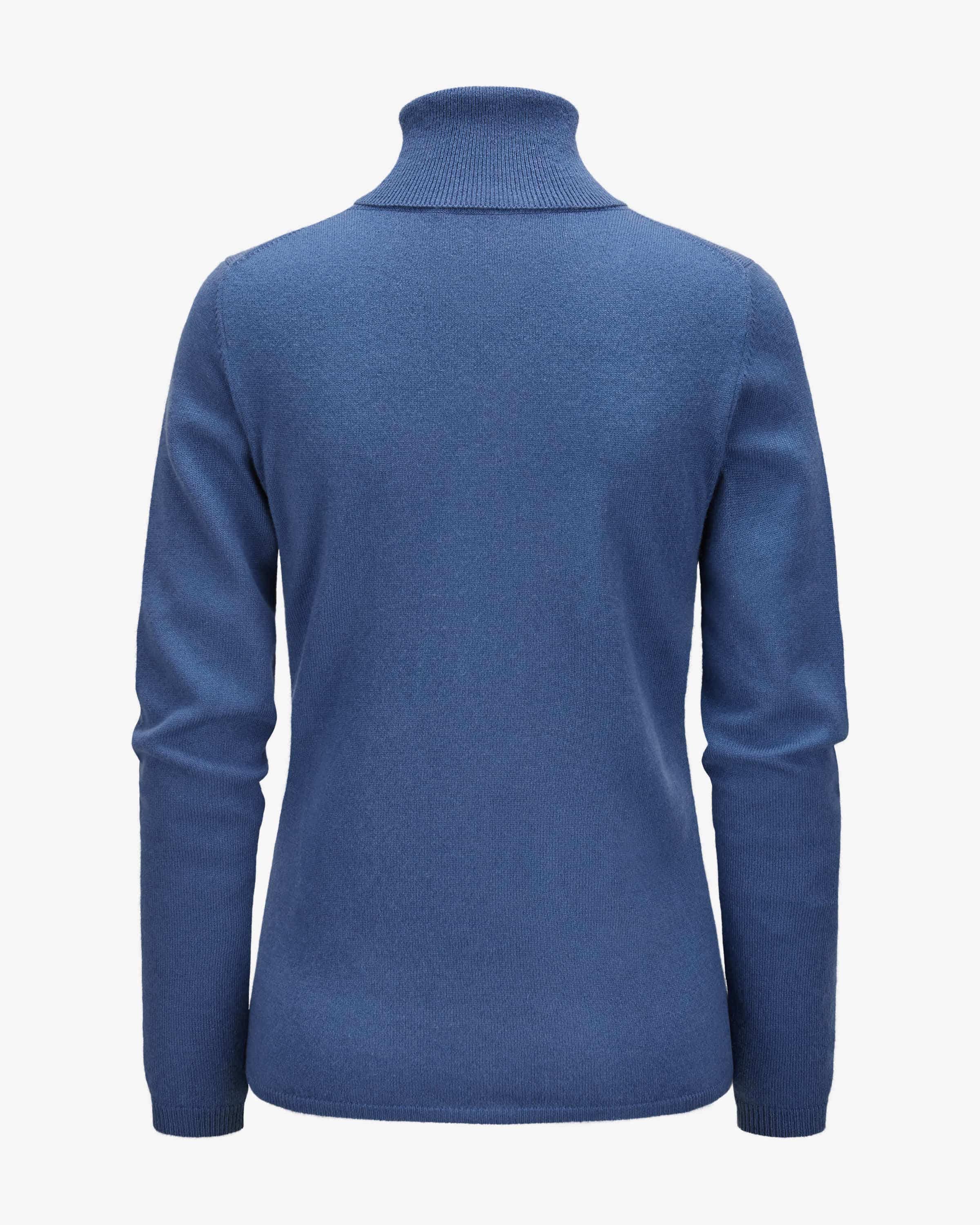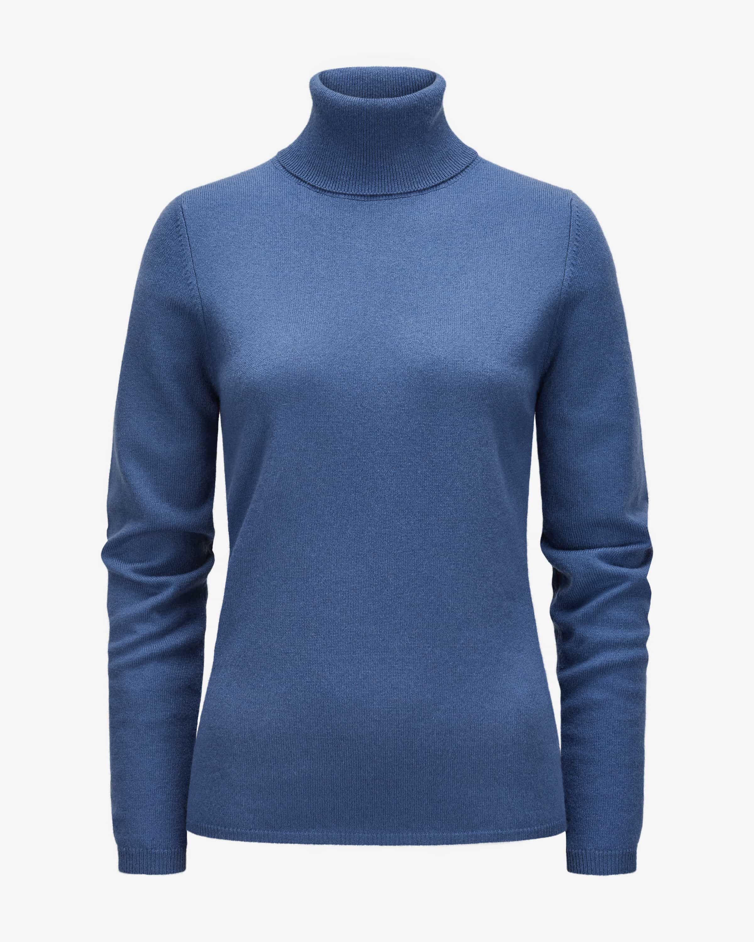 Cashmere-Rollkragenpullover für Damen von Allude in Rauchblau. Das Münchner Unternehmen Allude steht für Mode, die Selbstbewusstsein und zeitlose Individualität ausstrahlt. Gefertigt aus hochwertiger Cashmere-Wolle, besticht das schlichte Modell mit besonders weichem Griff und leichter Strick-Haptik, wodurch ein zeitloses Essential entsteht.