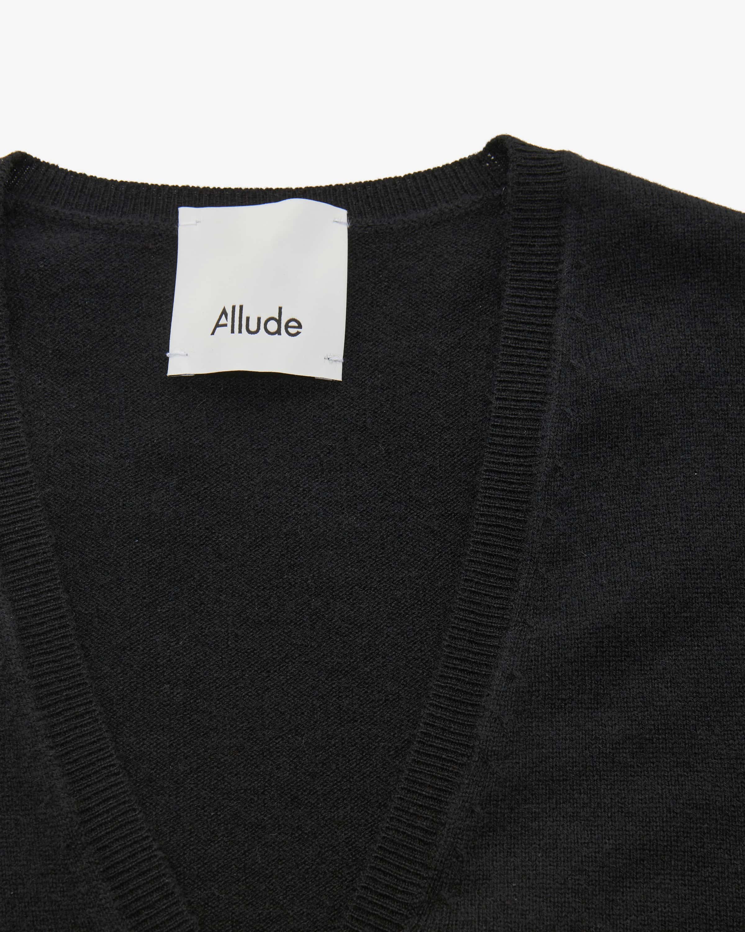 Cashmere-Strickjacke für Damen von Allude in Schwarz. Das Münchner Unternehmen Allude steht für Mode, die Selbstbewusstsein und zeitlose Individualität ausstrahlt. Gefertigt aus hochwertiger Cashmere-Wolle, besticht das schlichte Modell mit besonders weichem Griff und leichter Strick-Haptik, wodurch ein zeitloses Essential entsteht.