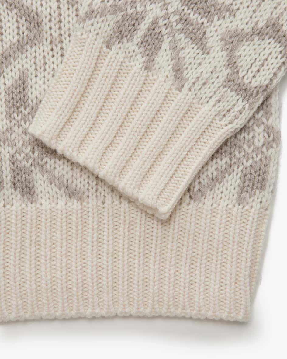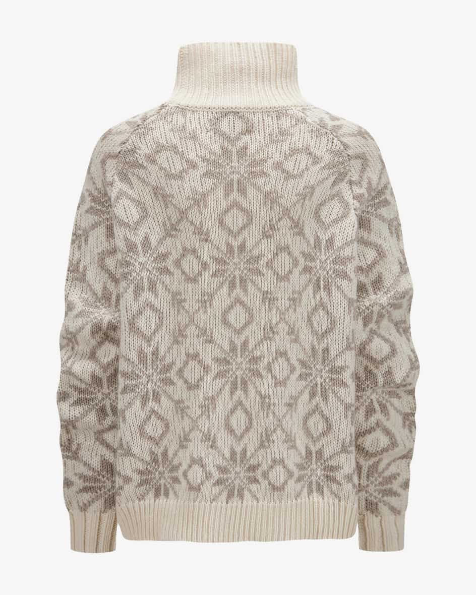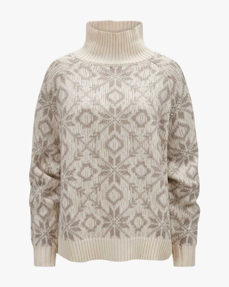 Pullover für Damen von Allude in Taupe und Creme. Das Münchner Label wurde 1993 von Andrea Karg gegründet und ist bekannt für luxuriöse Strickmode aus edlem Cashmere. Auch dieses Modell überzeugt mit weichem Schurwolle-Cashmere-Mix, der für angenehmen Tragekomfort sorgt. Das eingestrickte Schneeflocken-Muster im Norweger-Stil schafft einen perfekten Begleiter für kühlere Tage.