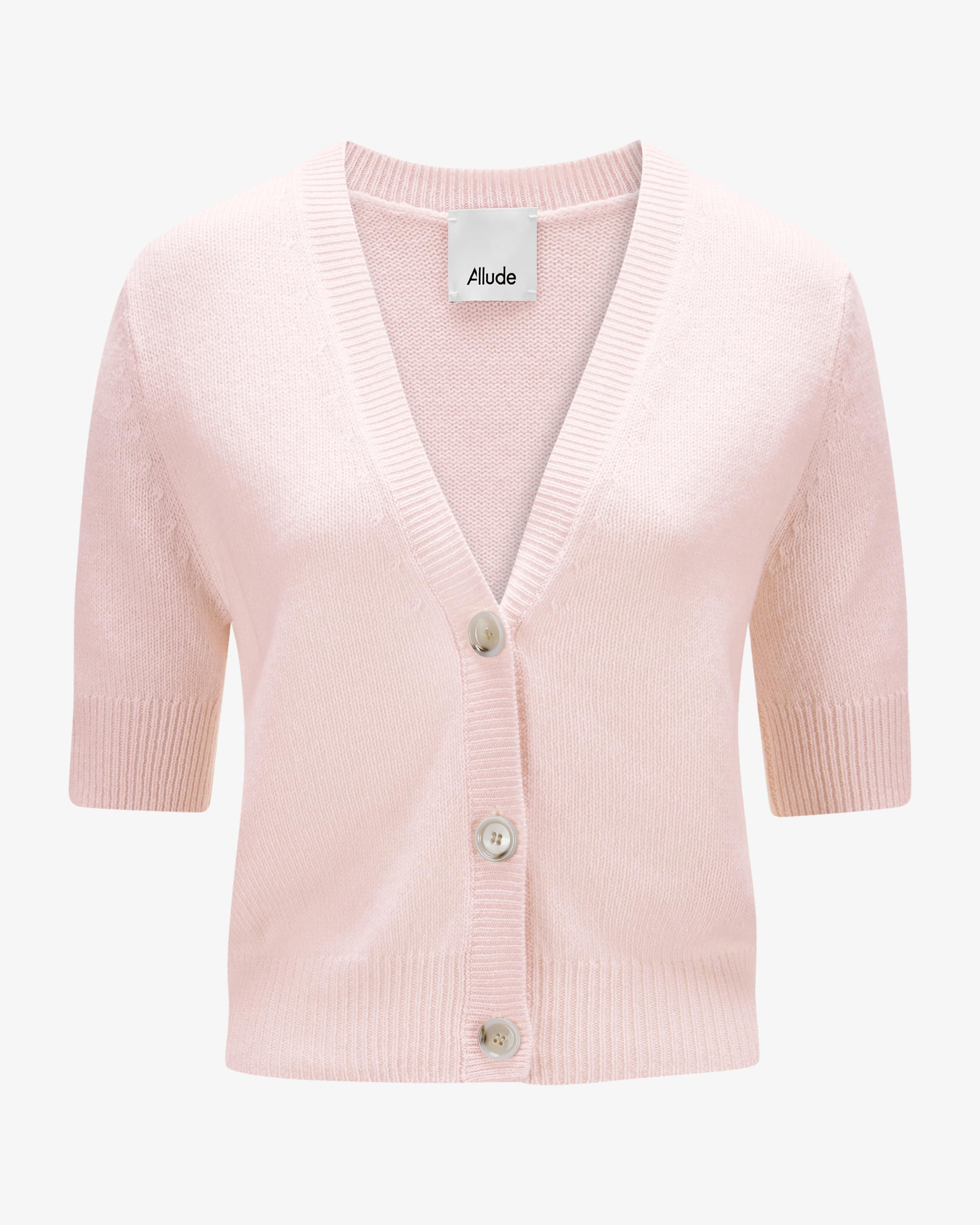 Cashmere-Strickjacke für Damen von Allude in Puder. Das Münchner Label wurde 1993 von Andrea und Christian Karg gegründet und ist bekannt für luxuriöse Strickmode aus edlem Kaschmir. Das Modell aus hochwertigem Cashmere besticht mit einem weichen Griff, während die schlichte Schnittführung einen vielseitigen Liebling für kuschelige Tage schafft.