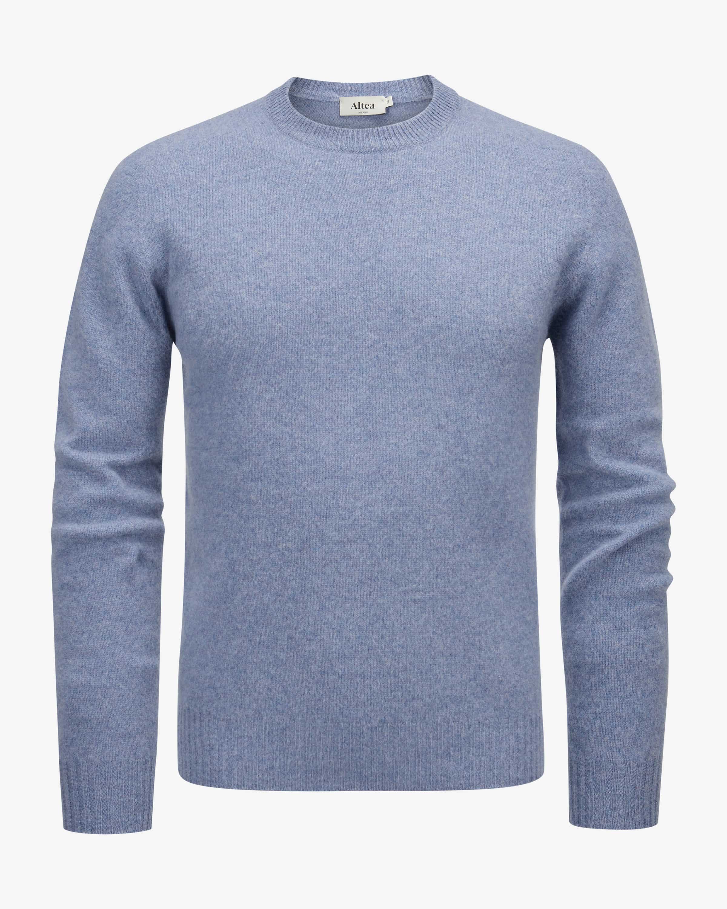 Pullover für Herren von Altea in Blau. Made in Italy - Das Modell in fein melierter Optik besticht dank der Verwendung von hochwertiger Shetland-Wolle mit einer weichen Haptik und Leichtigkeit, welche zugleich Wärme und Komfort bietet, ohne dabei zu beschweren. Ein kombistarker Strick-Favorit für Ihre Herbst- Winter-Garderobe.