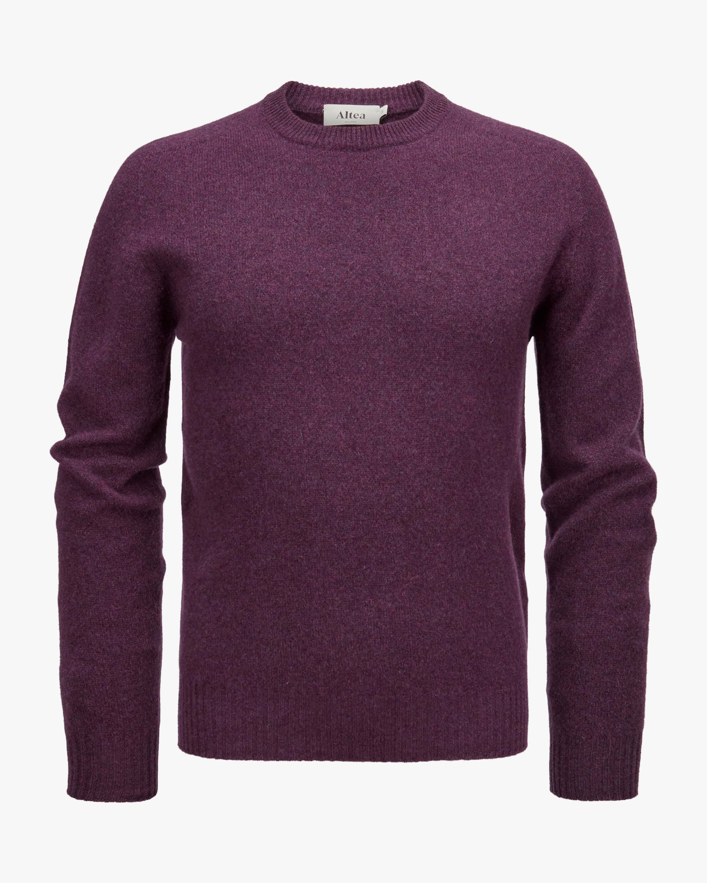 Pullover für Herren von Altea in Pflaume. Made in Italy - Das Modell in fein melierter Optik besticht dank der Verwendung von hochwertiger Shetland-Wolle mit einer weichen Haptik und Leichtigkeit, welche zugleich Wärme und Komfort bietet, ohne dabei zu beschweren. Ein kombistarker Strick-Favorit für Ihre Herbst- Winter-Garderobe.