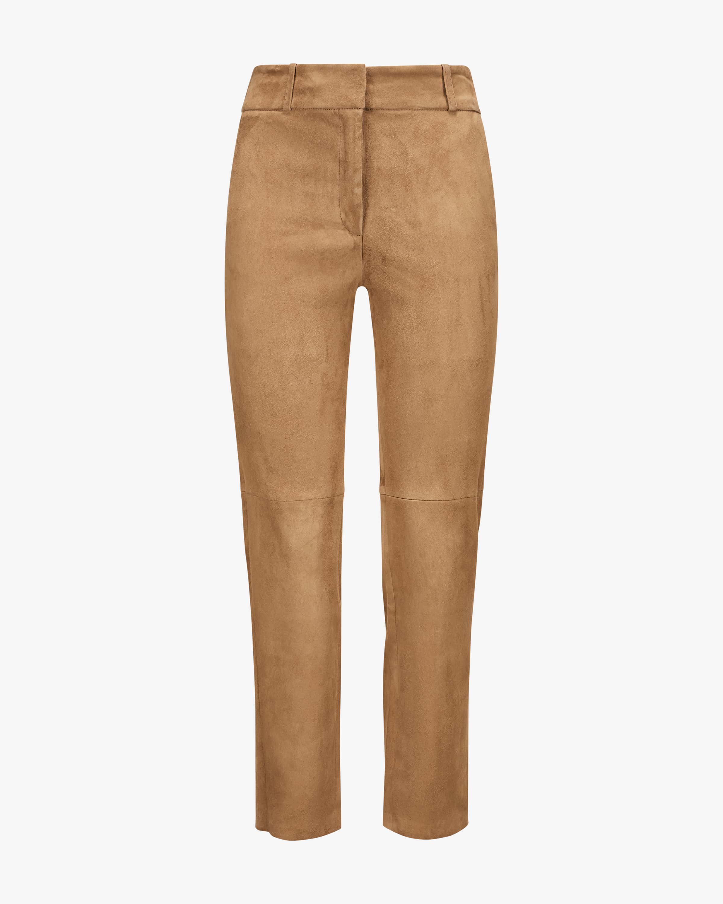 7/8-Lederhose Jen für Damen von Arma in Cognac. Aus edlem Lammvelours besticht dieses verkürzte Modell sowohl optisch als auch haptisch, während die dezenten Knieabnäher der verkürzten Hose einen modernen Touch verleihen.