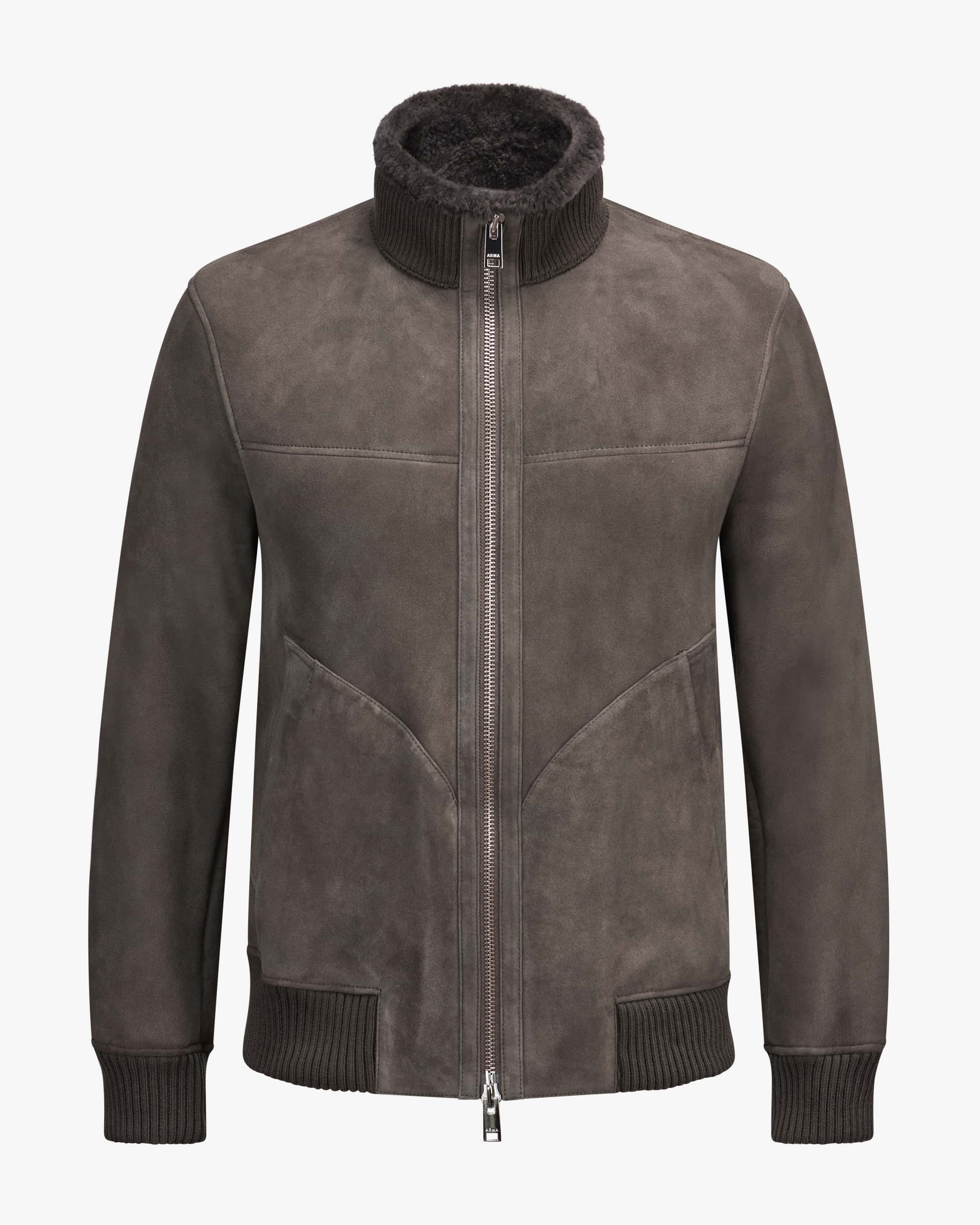 Arek Lederblouson für Herren von Arma in Graubraun. 1985 in Amsterdam gegründet, steht Arma für edle Leder- und Lammfellmode mit klarer Designsprache. Dank der hochwertigen Veloursleder-Qualität erhält das Modell einen edlen Charakter, während die Blouson-Aufmachung sowie die Rippstrick-Details ein legeres Gesamtbild kreieren. Zugleich schützt Sie die kuschelige Schafsfell-Innenseite optimal vor Kälte.