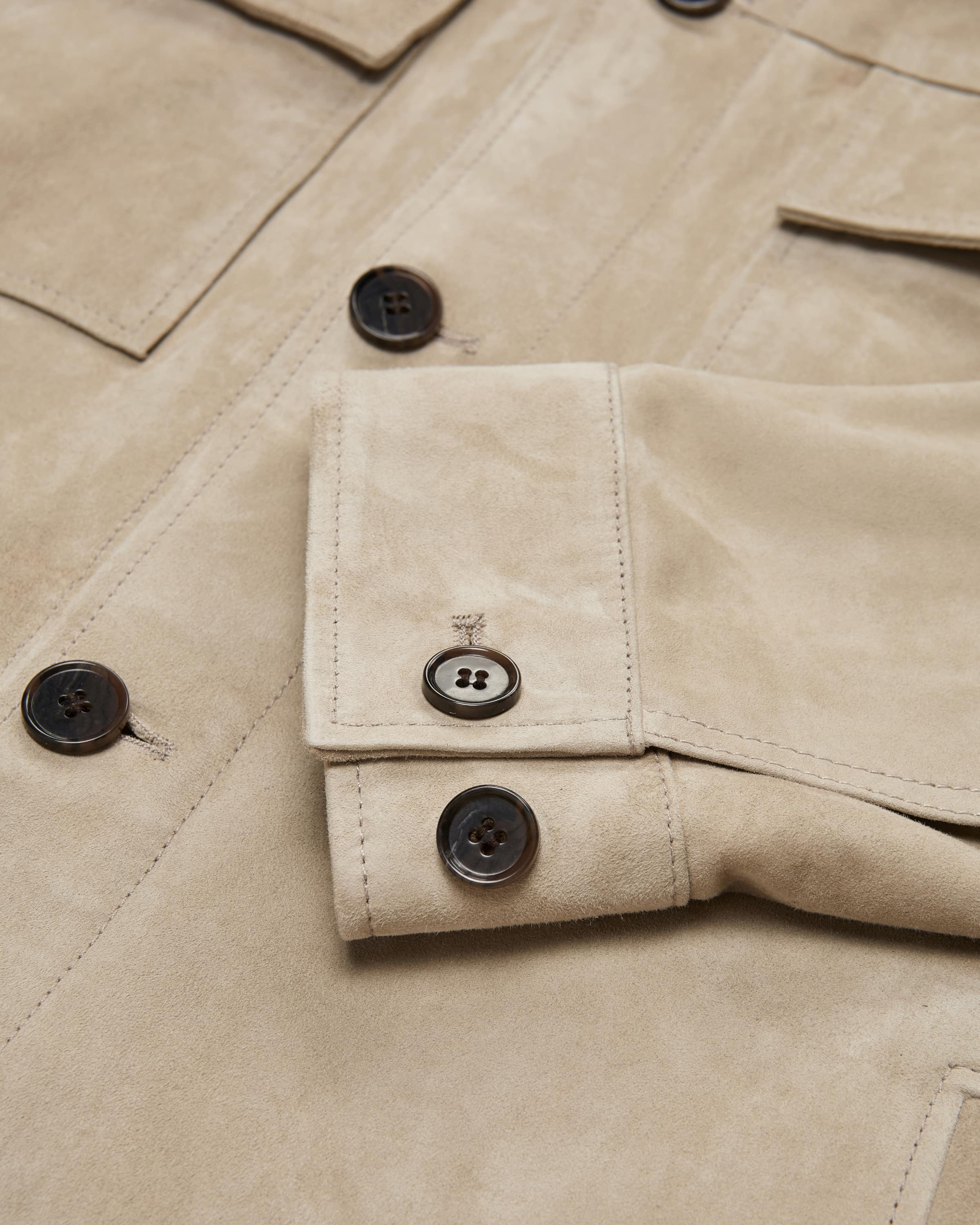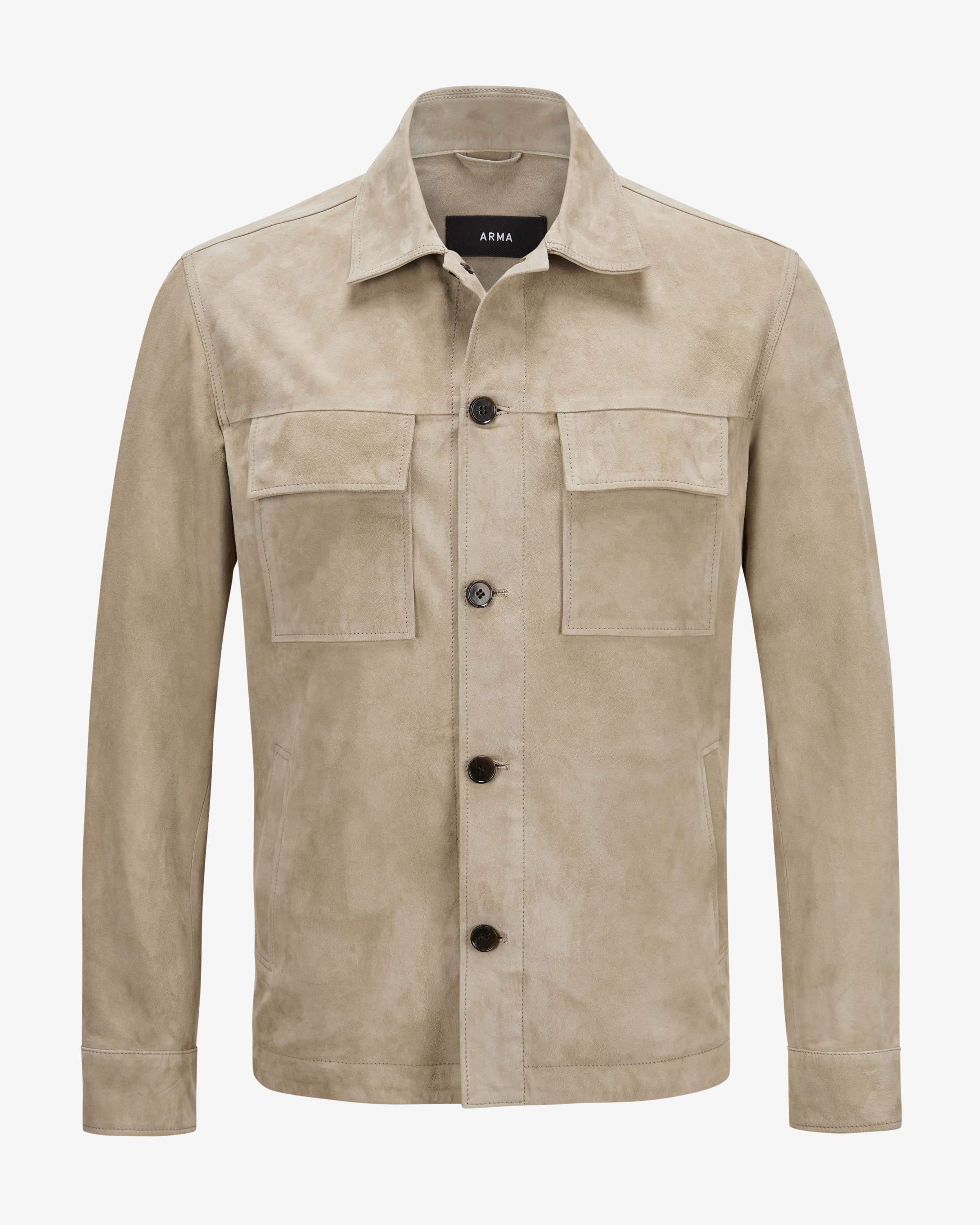 Leder-Shirtjacket Mex für Herren von Arma in Beige. 1985 in Amsterdam gegründet, steht Arma für edle Leder- und Lammfellmode mit klarer Designsprache. Dieses Modell überzeugt dank der Lammvelours-Qualität sowohl haptisch als auch optisch, während die Shirtjacket-Aufmachung einen modisch-maskulinen Look kreiert.