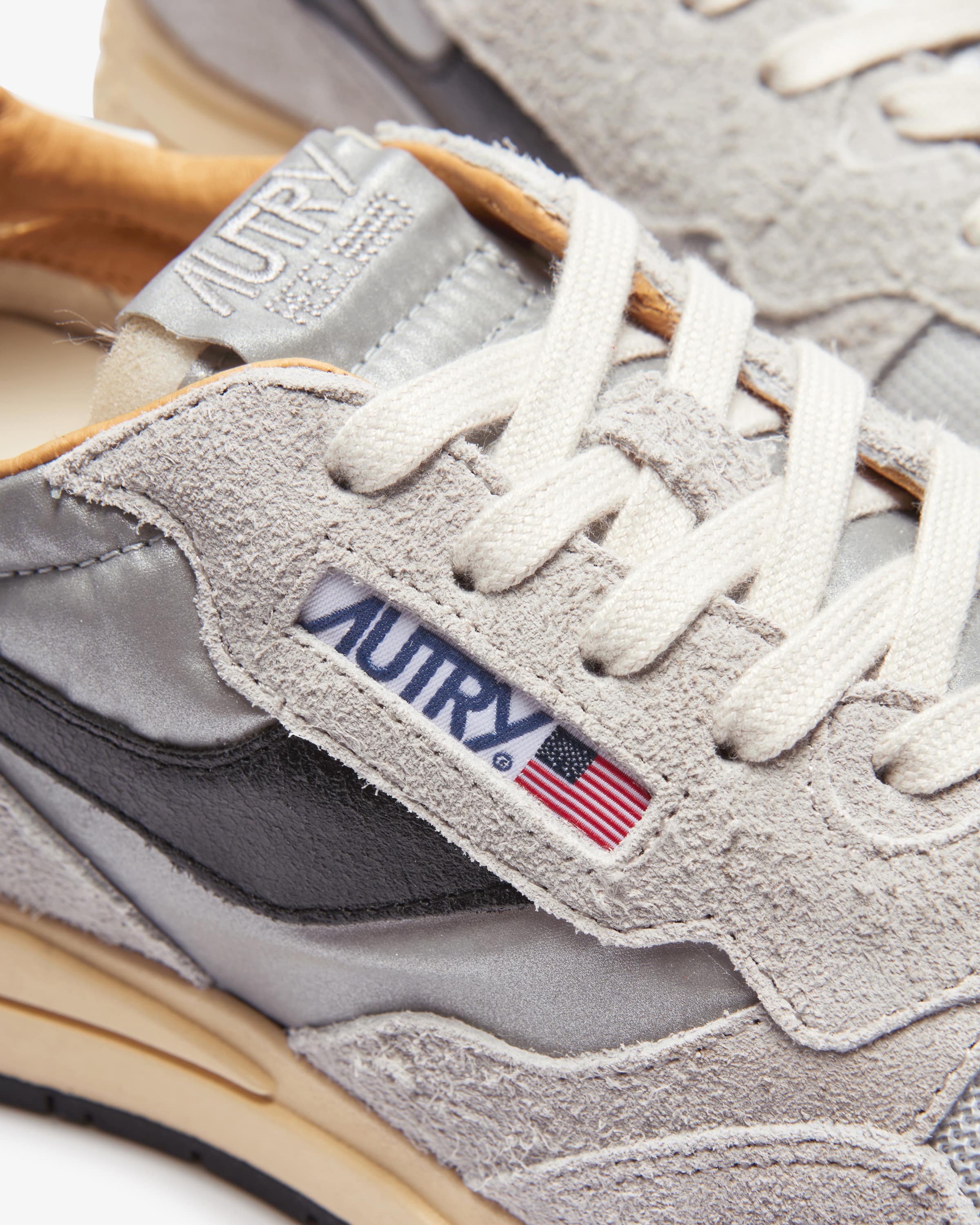 Sneaker Reelwind Low für Herren von Autry in Grau, Silber und Schwarz. Das 1982 in Dallas gegründete Label etablierte sich zu einem der beliebtesten Sneaker- Marken der 1980er Jahre und feierte 2019 sein Comeback. Für dieses Modell ließ sich die Marke von dem dynamischen Design der Runner inspirieren und verbindet fließend die Innovation von Performance-Schuhen mit der Ästhetik der 80er Jahre. Der aus Veloursleder und strapazierfähigem Textil gefertigte Reelwind ist eine außergewöhnliche Kombination aus Stil und Funktionalität.