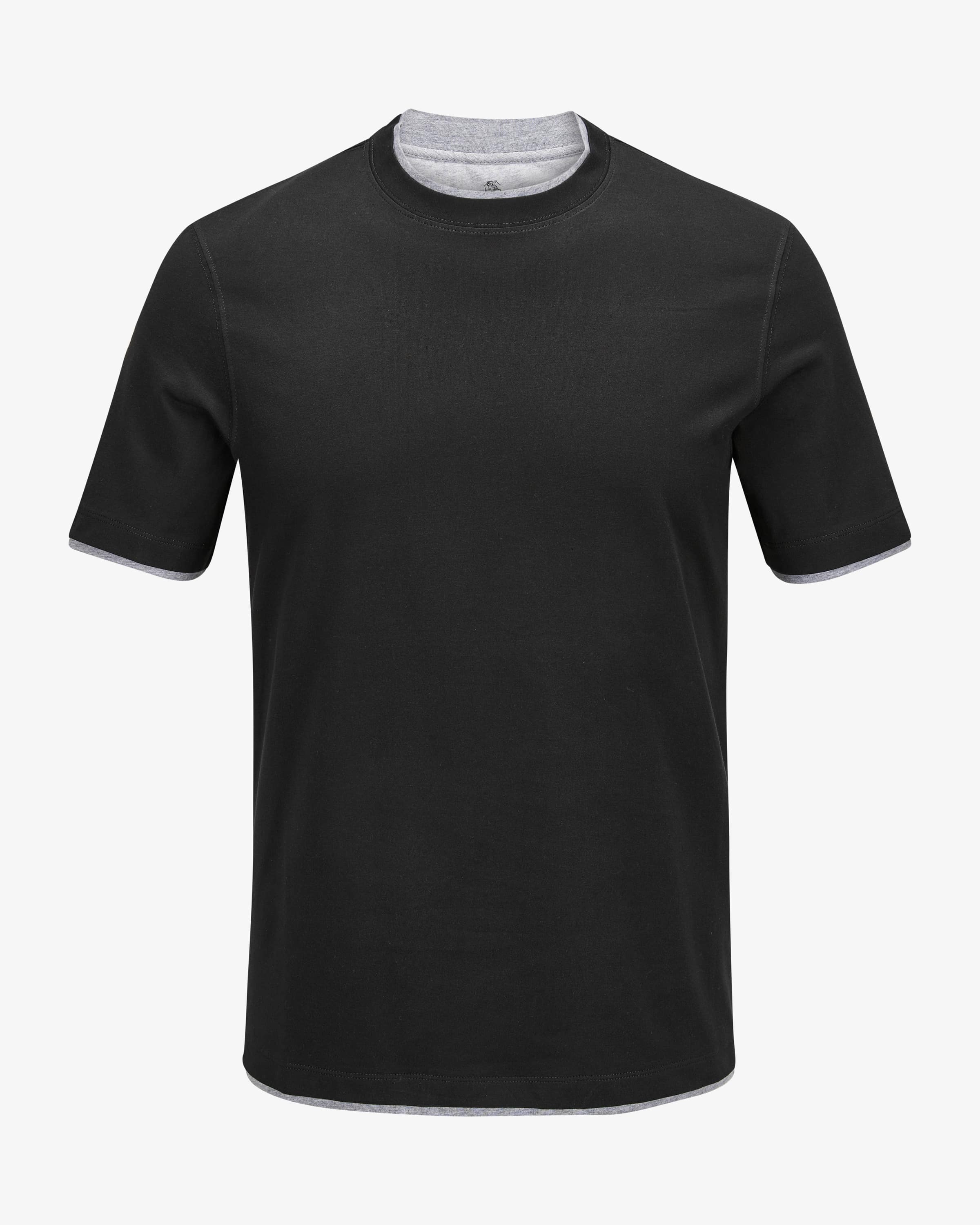 T-Shirt für Herren von Brunello Cucinelli in Schwarz und Off-White. Das Modell aus angenehmer Baumwoll-Qualität überzeugt mit weichem Griff, während das zweilagige Design in kontrastierender Farb-Kombination für das gewisse Etwas sorgt.