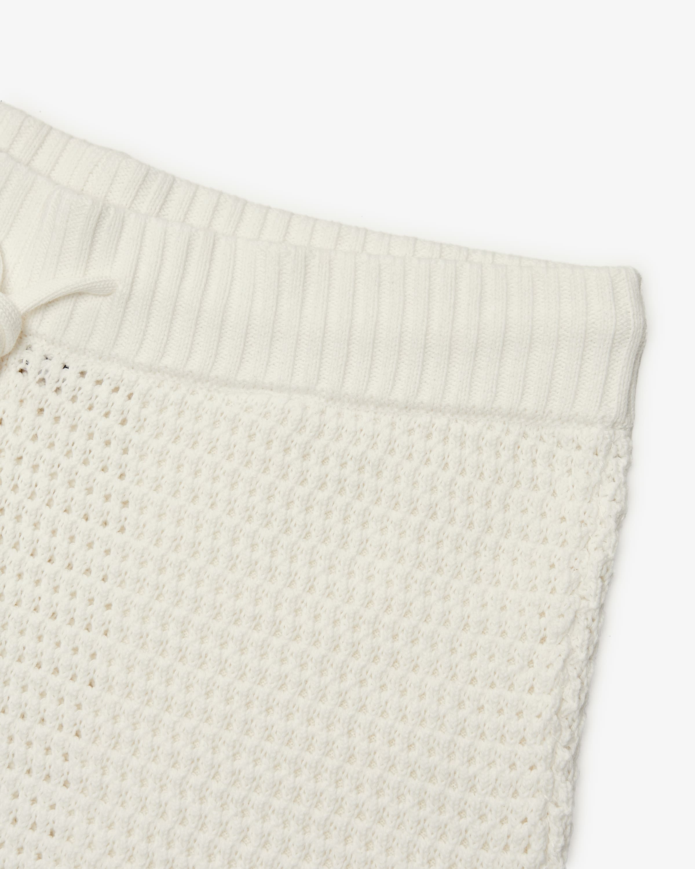 Strick-Verarbeitung in strukturiertem Crochet-Look, während das markante