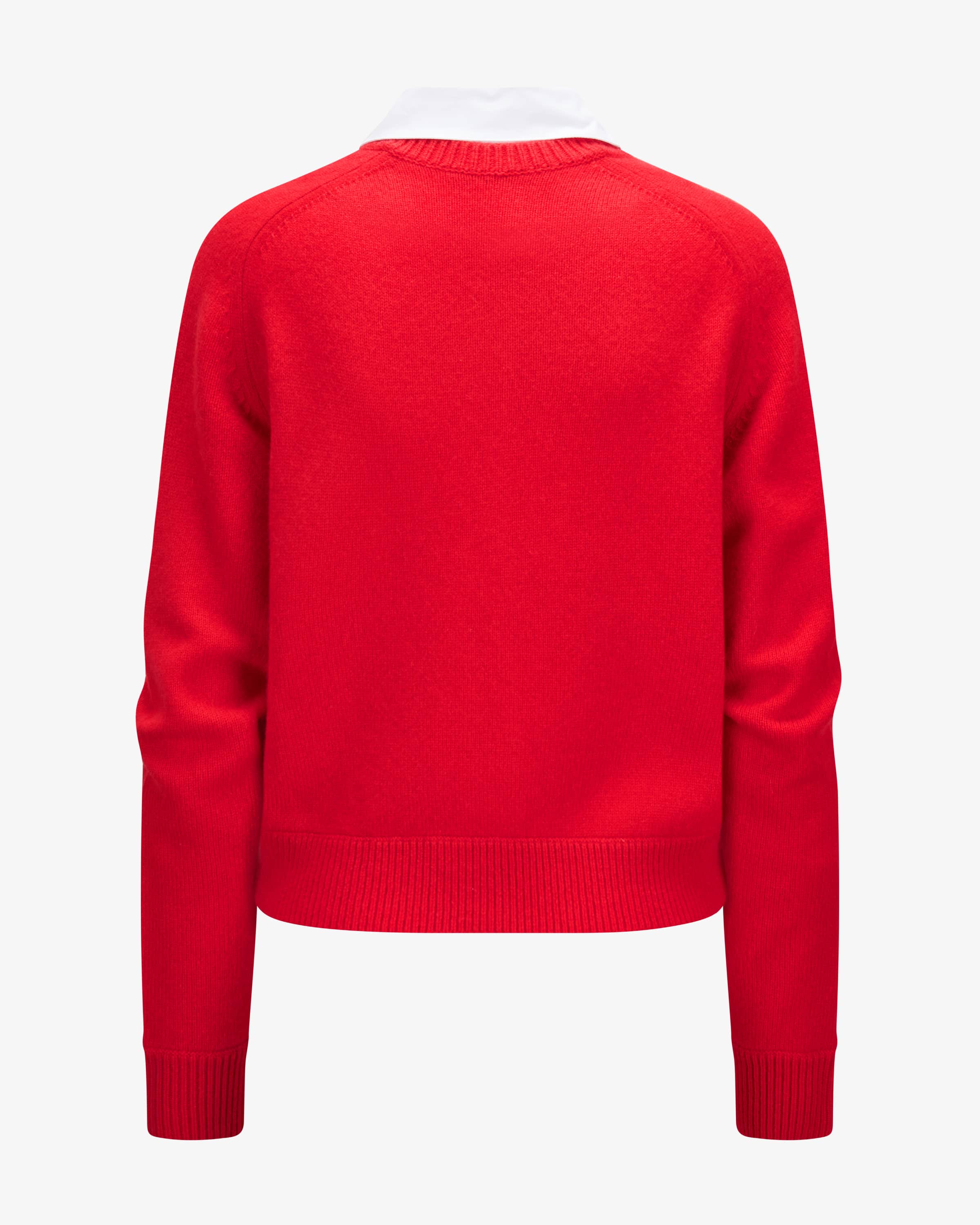 Elegant Statements Strickjacke für Damen von Dorothee Schumacher in Rot und Weiß. Feminine Power aus Deutschland – Dorothees Looks verbinden Stärke mit verspielter Eleganz. Dieses Modell erhält dank hochwertigem Schurwoll-Cashmere- Mix eine angenehm-weiche Haptik, während der abnehmbare Baumwoll-Kragen individuelle Looks kreieren – egal ob klassisch Casual oder mit eleganter Note.