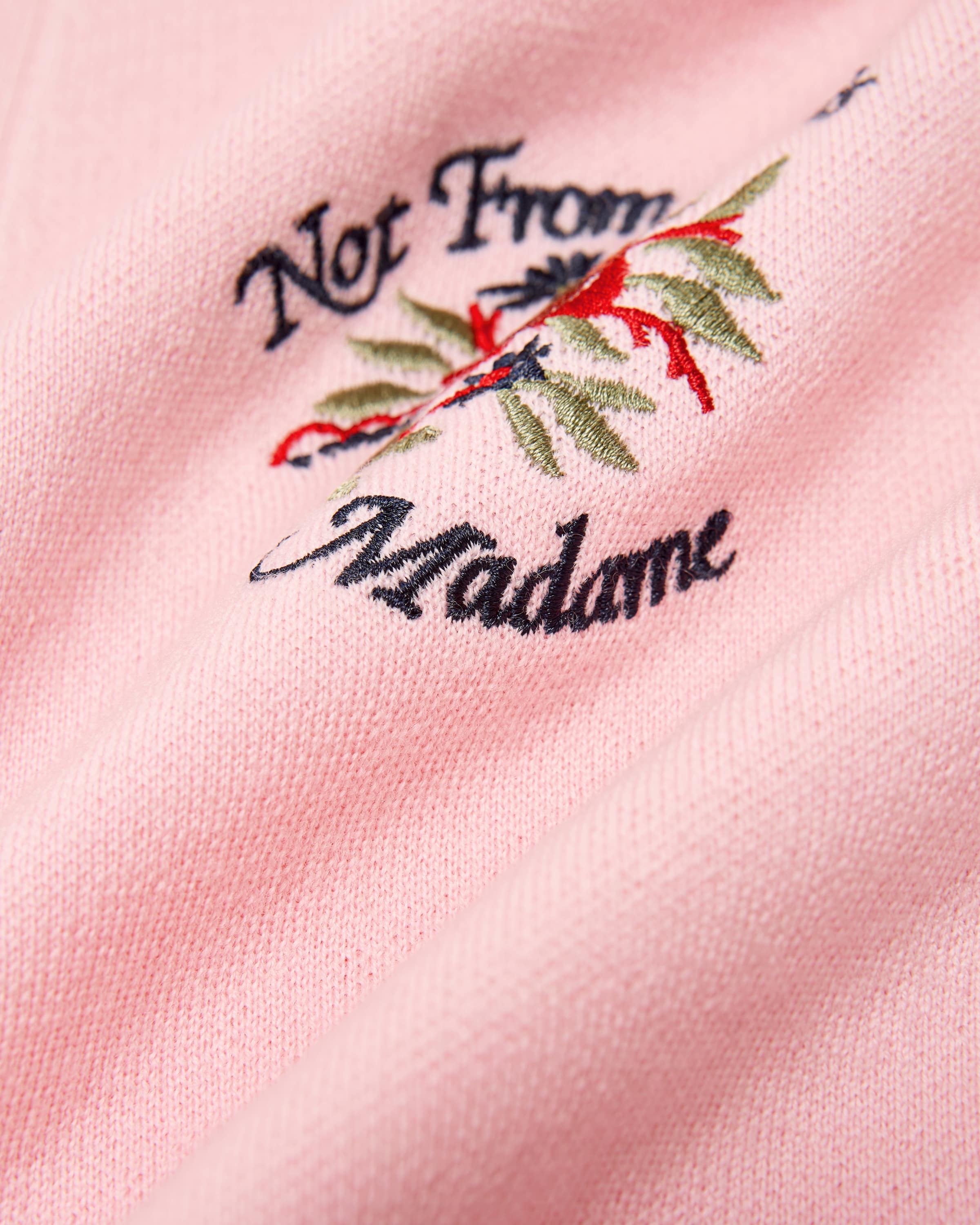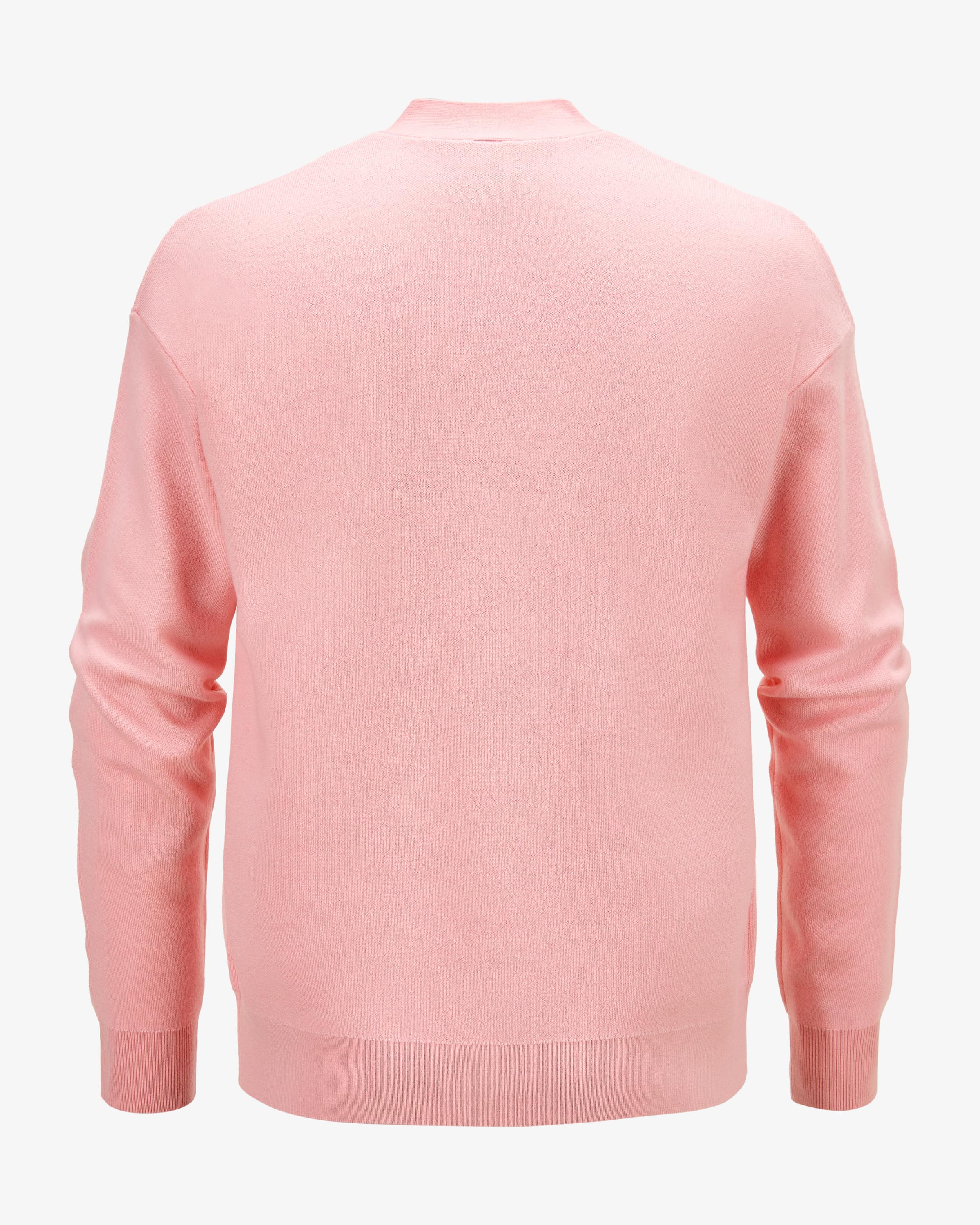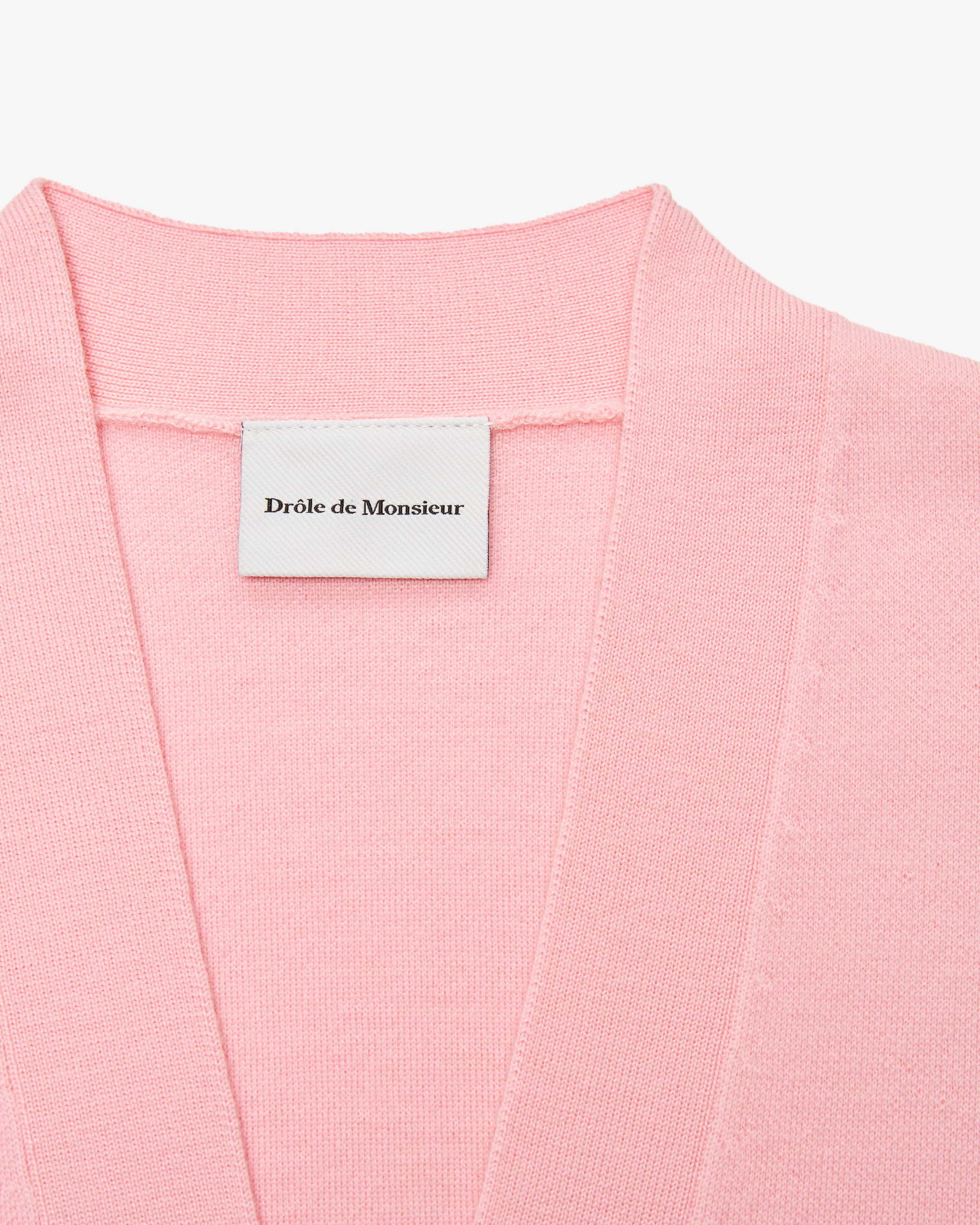Strickjacke für Herren von Drole de Monsieur in Rosa. Das Label wurde 2014 in Dijon gegründet und steht für einzigartige, tragbare Designs mit retro- inspirierter Ästhetik. Auch dieses Modell präsentiert sich mit schwerer Merinowolle-Qualität, während die florale Slogan-Stickerei und legere Details die Oversize-Silhouette gekonnt abrunden.