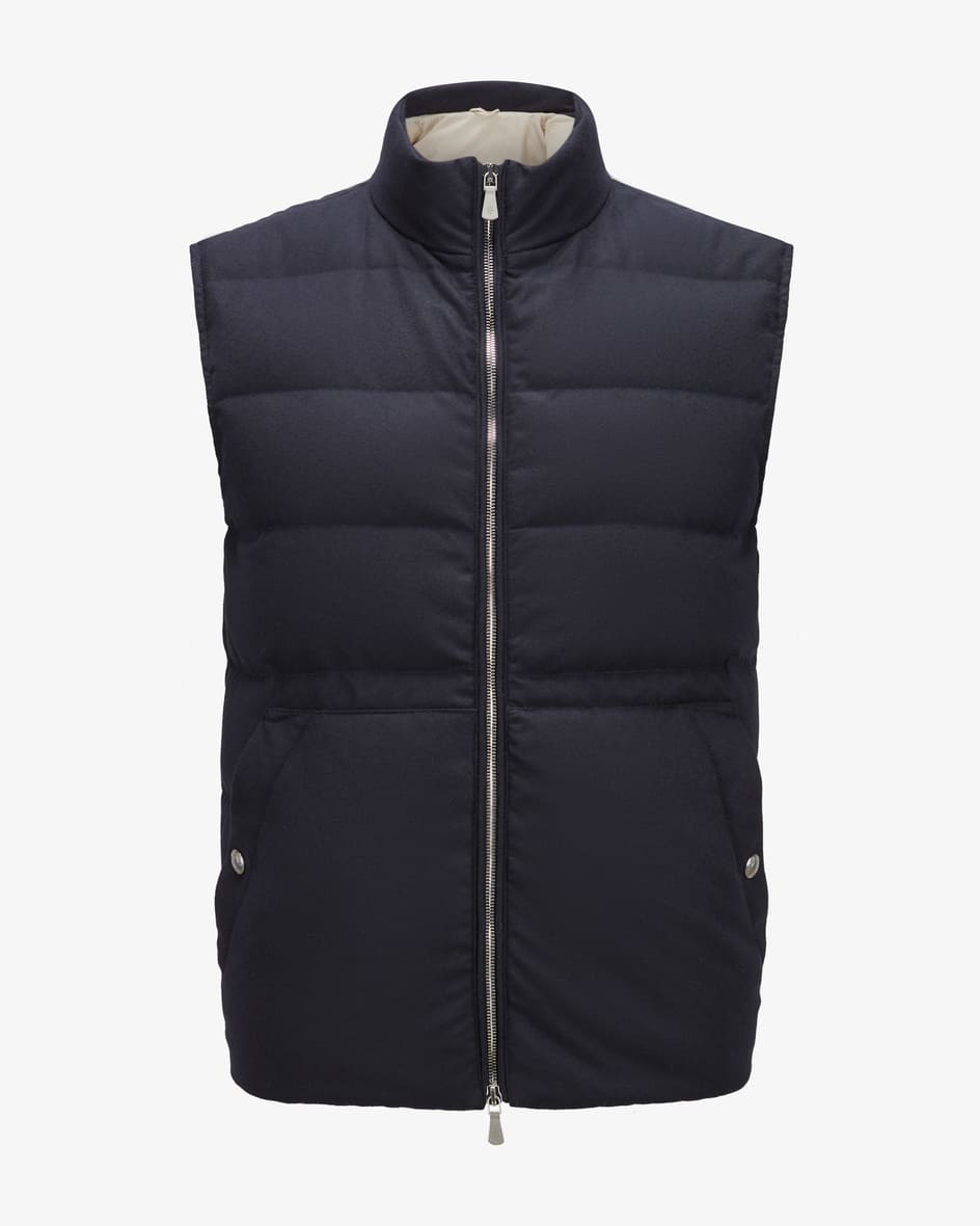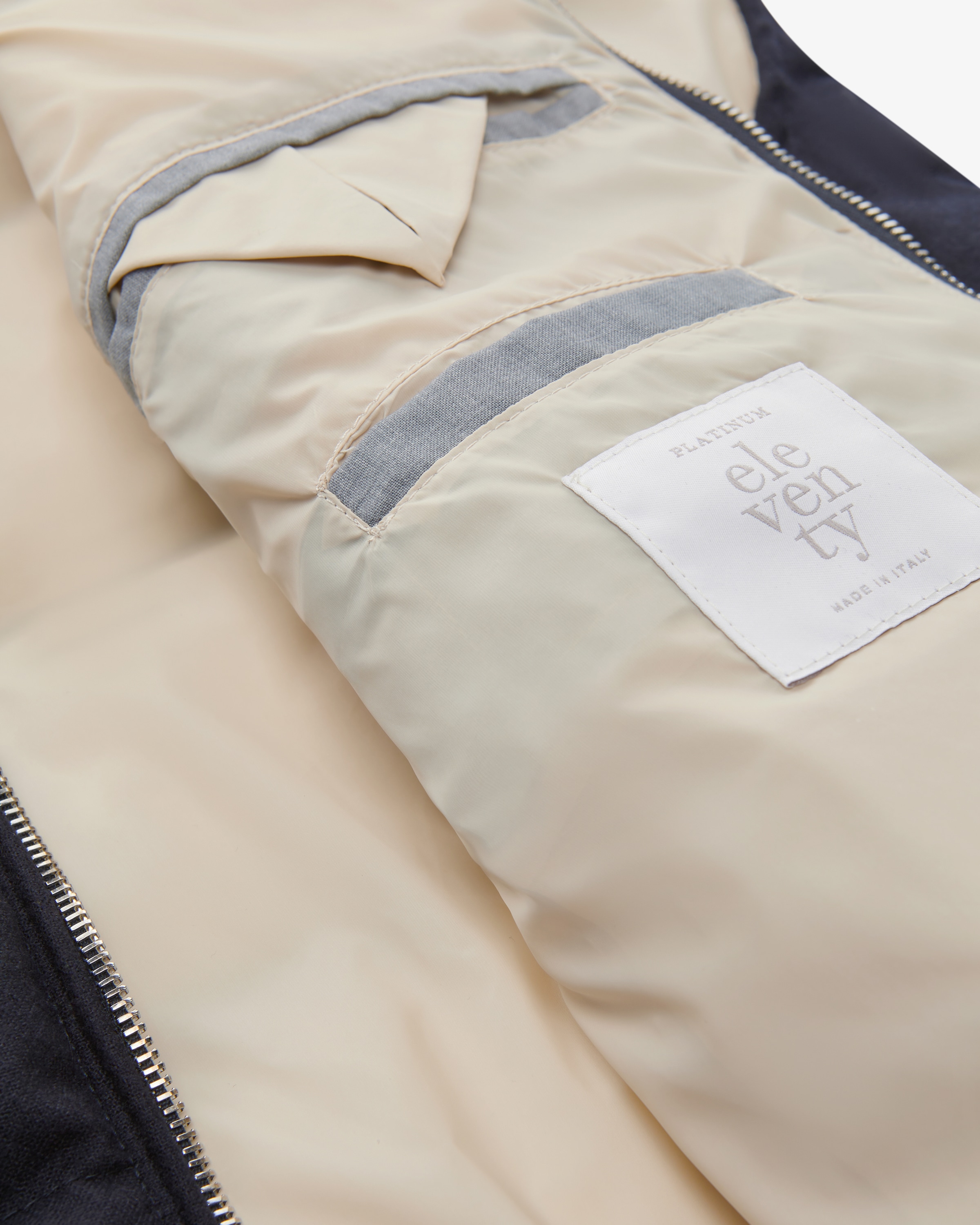 Daunenweste für Herren von Eleventy in Navy. Ein italienischer Stil, der ebenso zeitlos wie modern ist – das zeichnet das Label Eleventy aus. Das melierte Modell präsentiert sich mit weichem Woll-Material und sportiver Silhouette, während die hochwertige Daunen-Feder-Füllung einen wärmenden Outdoor-Begleiter schafft.