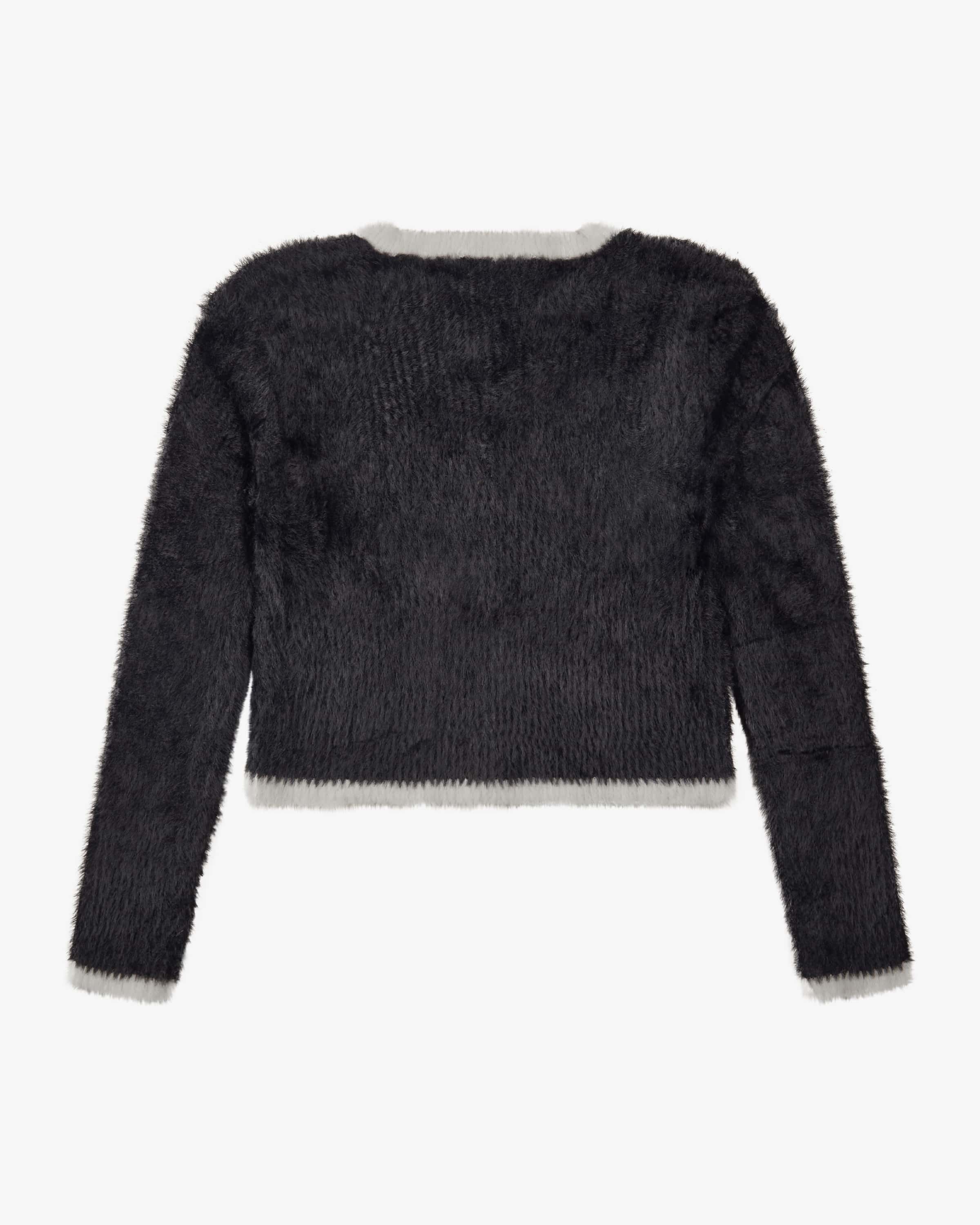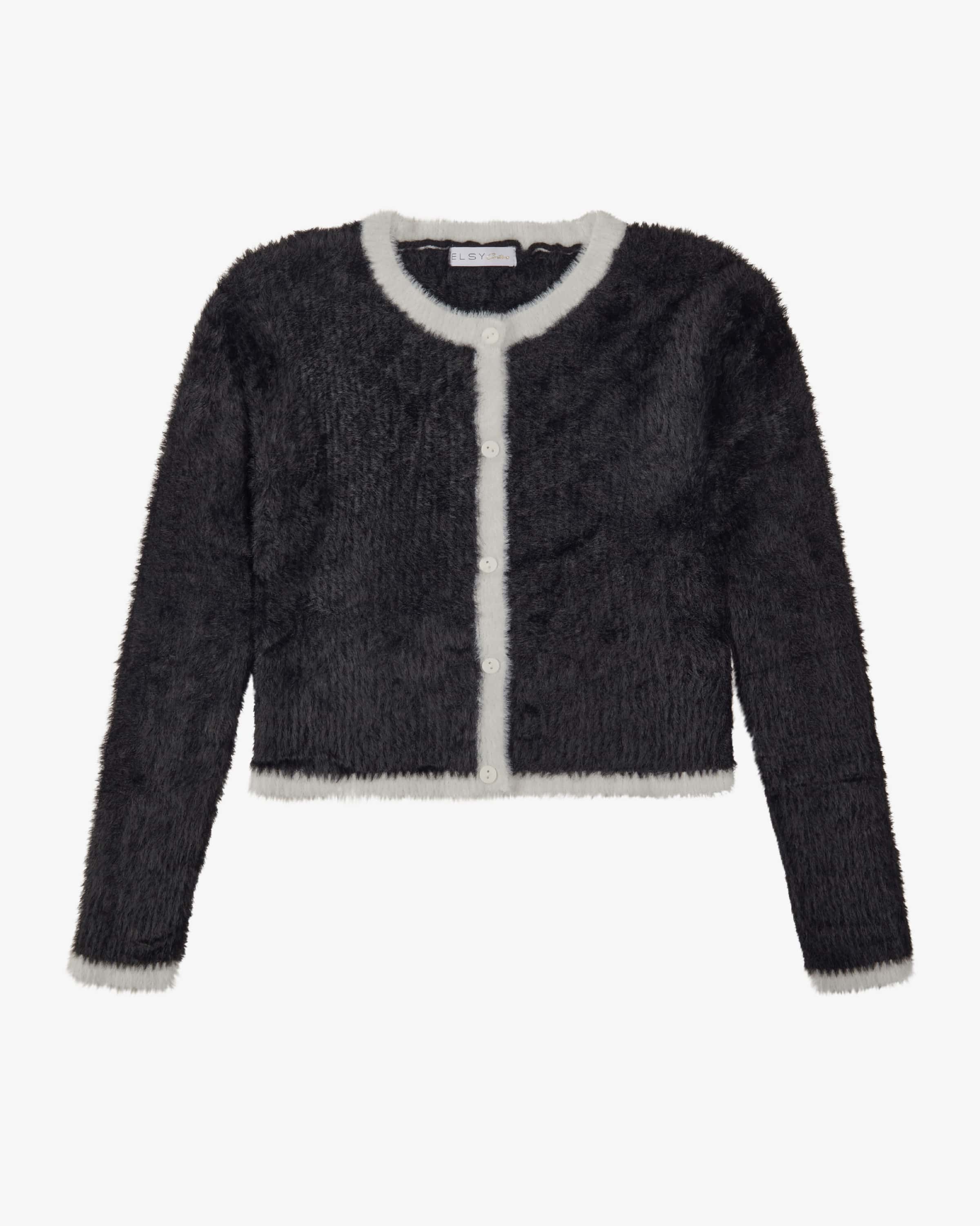 Alina Strickjacke für Mädchen von Elsy in Schwarz und Weiß. Italienisches Label für exklusive Kindermode – stilvoll und detailverliebt. Dieses Modell überzeugt mit flauschig, weicher Haptik, während die verkürzte Passform und das Rippstrick-Design einen zeitlosen Begleiter für Ihre Kleine schaffen.