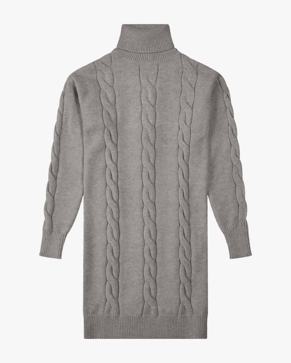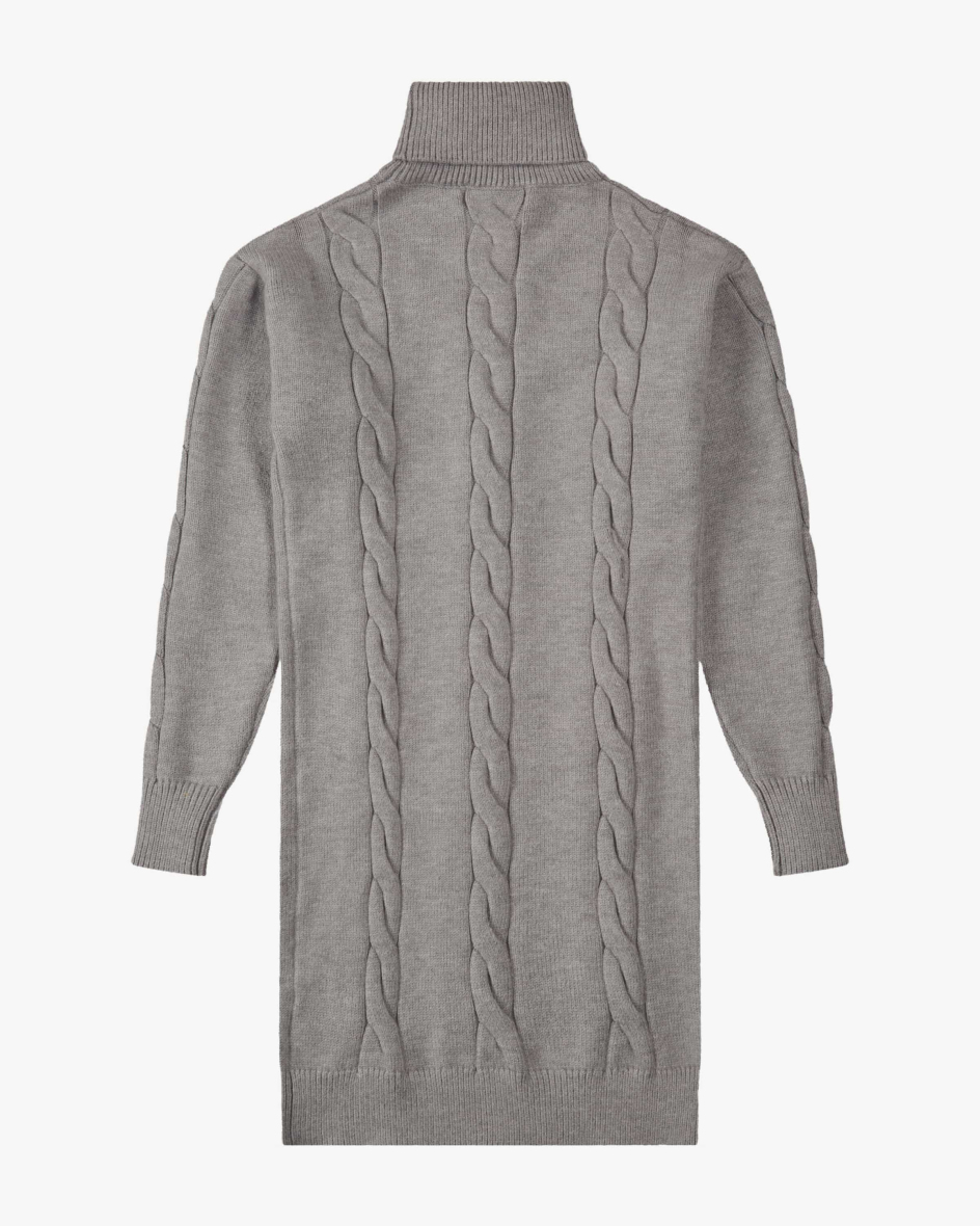 Nala Strickkleid für Mädchen von Elsy in Grau. Italienisches Label für exklusive Kindermode – stilvoll und detailverliebt. Dieses Modell überzeugt mit weicher Haptik und modernem Zopfstrick-Details, während der Rollkragen Ihre Kleine angenehm warmhält.