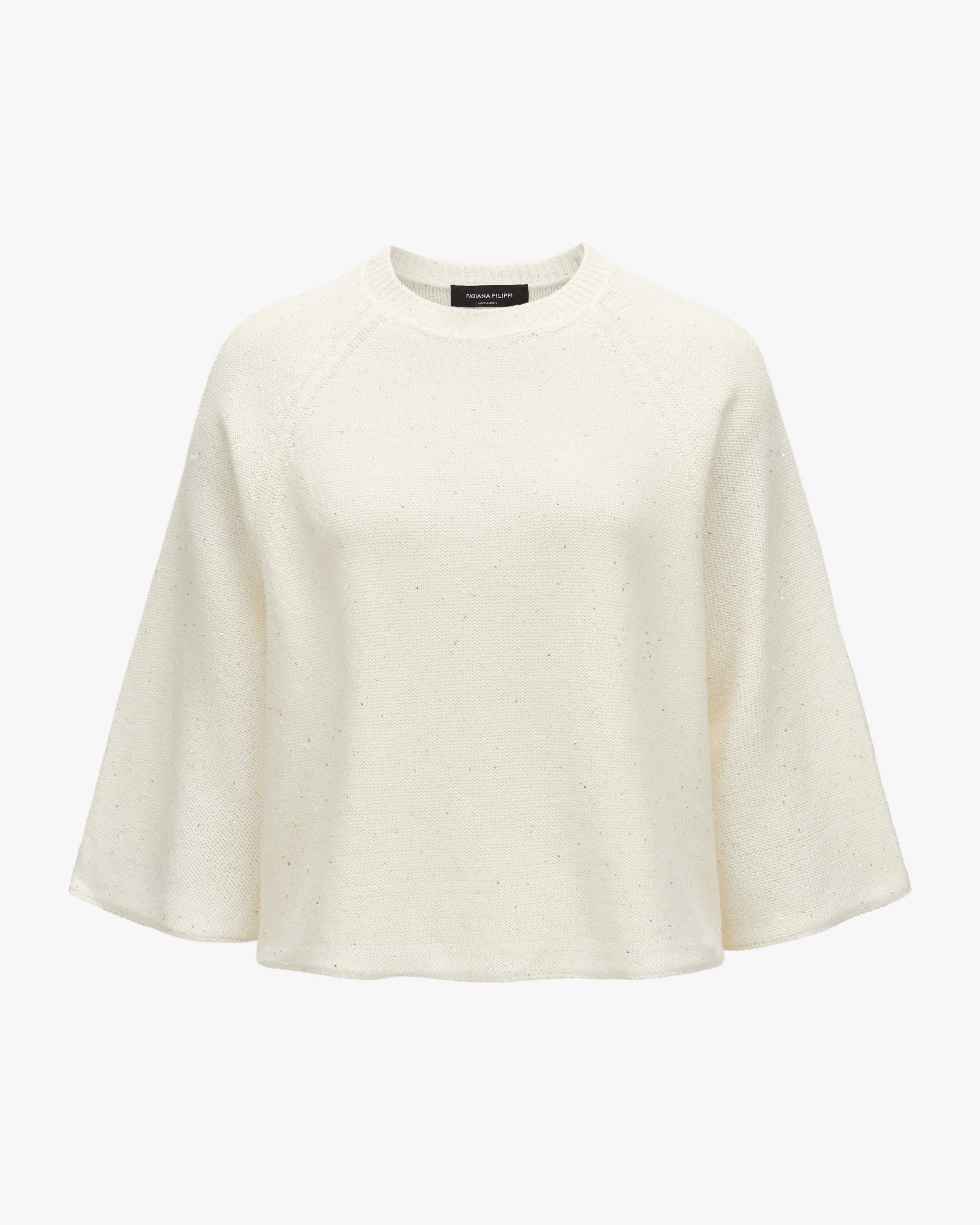 Pullover für Damen von Fabiana Filippi in Weiß. Das Oversize-Modell aus hochwertigem Baumwoll-Leinen-Mix besticht mit angenehmen Tragemomenten, während changierende Pailletten das sonst schlichte Design modisch aufwerten. - Ein vielseitiges Basic mit Charme.