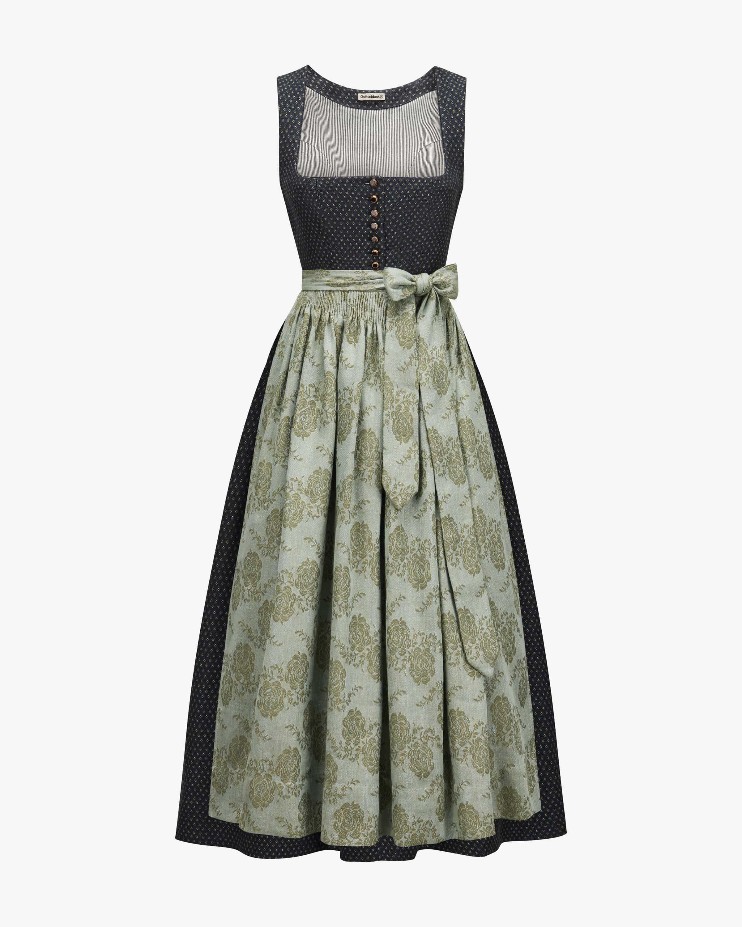 Monika Dirndl lang mit Schürze für Damen von Gottseidank in Nachtblau, Oliv und