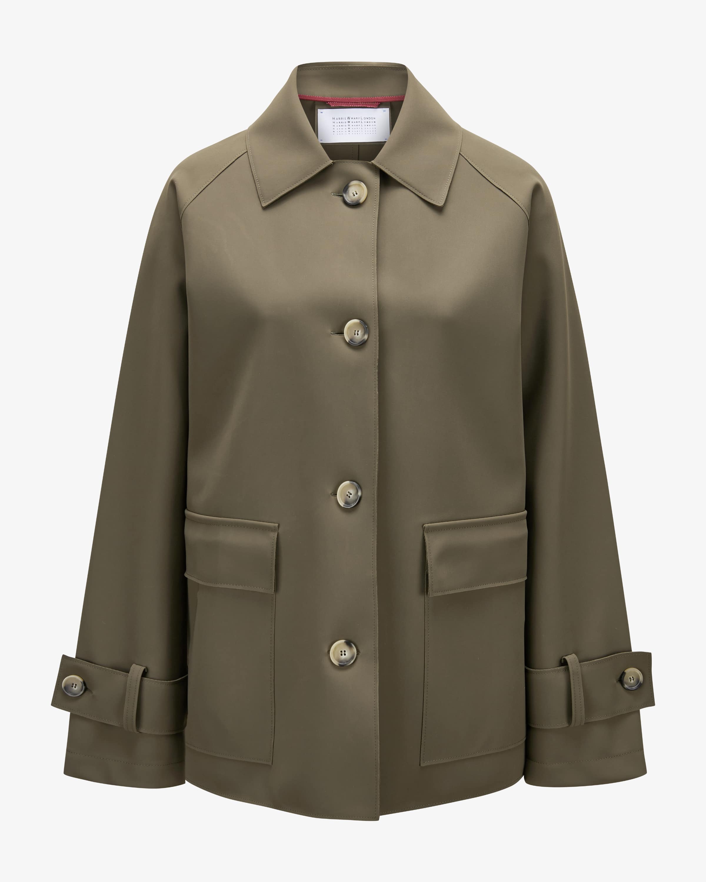 Jacke für Damen von Harris Wharf London in Khaki. Die britische Marke interpretiert klassische Outerwear mit moderner Klarheit neu – gefertigt in Italien. Das weit geschnittene Modell besticht dank der Verwendung von elastischem Scuba-Material mit wasserabweisender Eigenschaft als idealer Übergangs-Begleiter, welcher durch die großen Taschen sowie geknöpften Ärmelriegel einen modernen Charakter erhält.