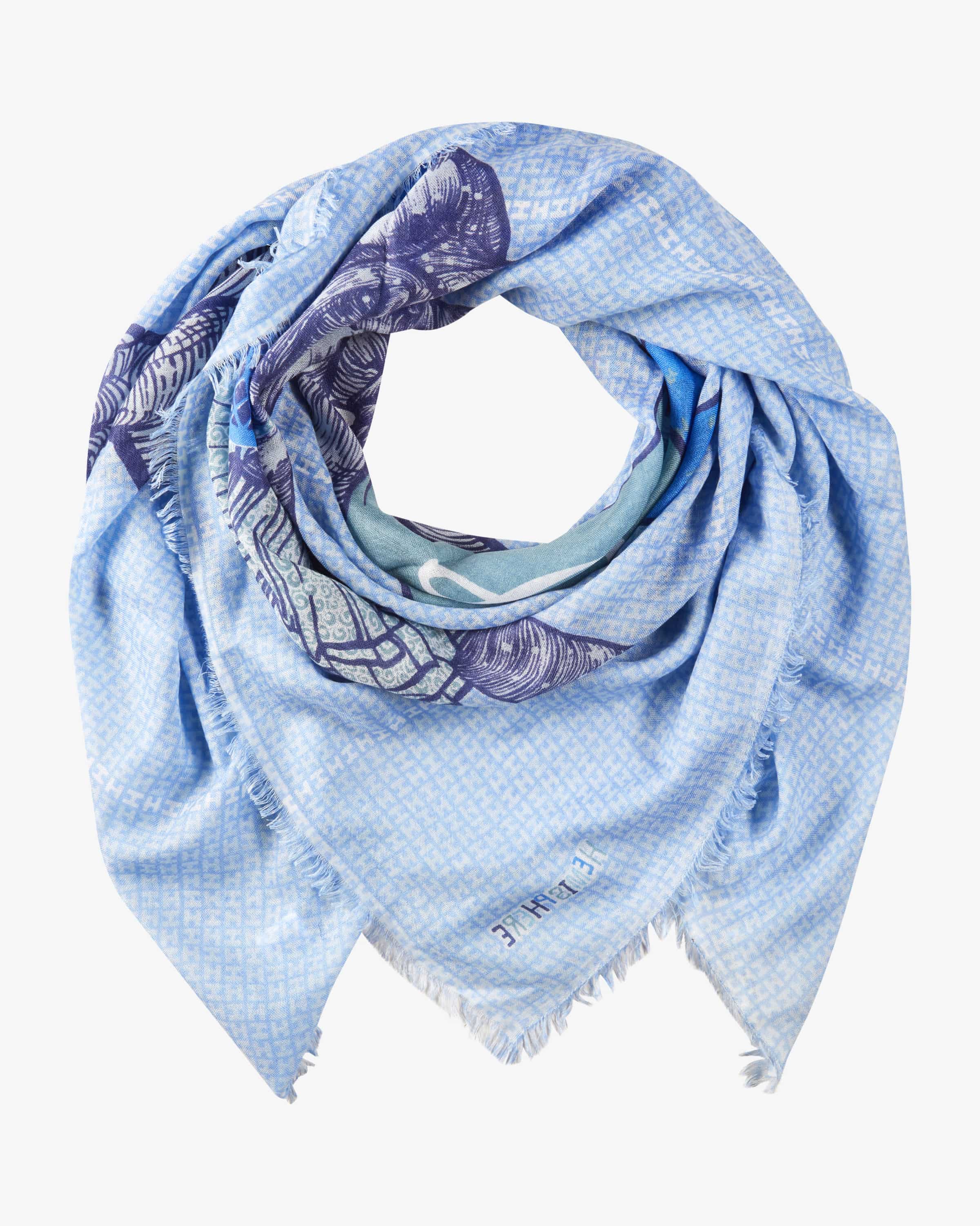 Cashmere-Seidentuch Omatch für Damen von Hemisphere in Blau und Weiß. Die deutsche Marke steht für luxuriöse Strick- und Kaschmirteile mit Fokus auf Qualität, Weichheit und zeitlose Farben. Dank der Verwendung von hochwertiger Cashmere-Seiden-Qualität in Semi-Transparenter Aufmachung begeistert das Accessoire mit besonders angenehmer Haptik. Das Elefanten-Logo-Design verleiht zusätzlich einen besonderen Charme.