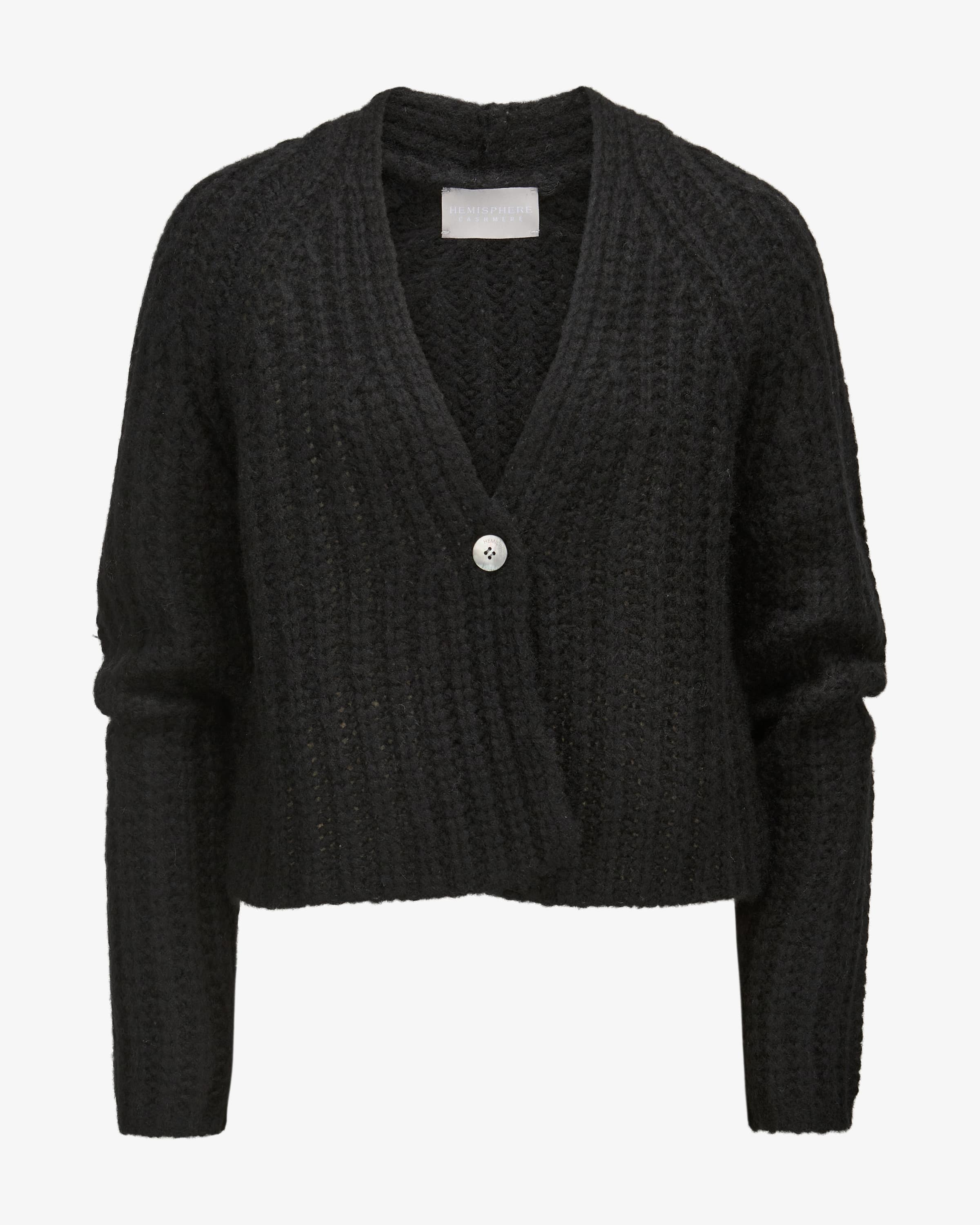 Cashmere-Strickjacke für Damen von Hemisphere in Schwarz. Dank hochwertigem Cashmere- Baumwoll-Mix sowie der weiten Silhouette begeistert das Modell als legerer Favorit mit weicher Haptik, welcher durch das Grobstrick- Design modern vollendet wird.