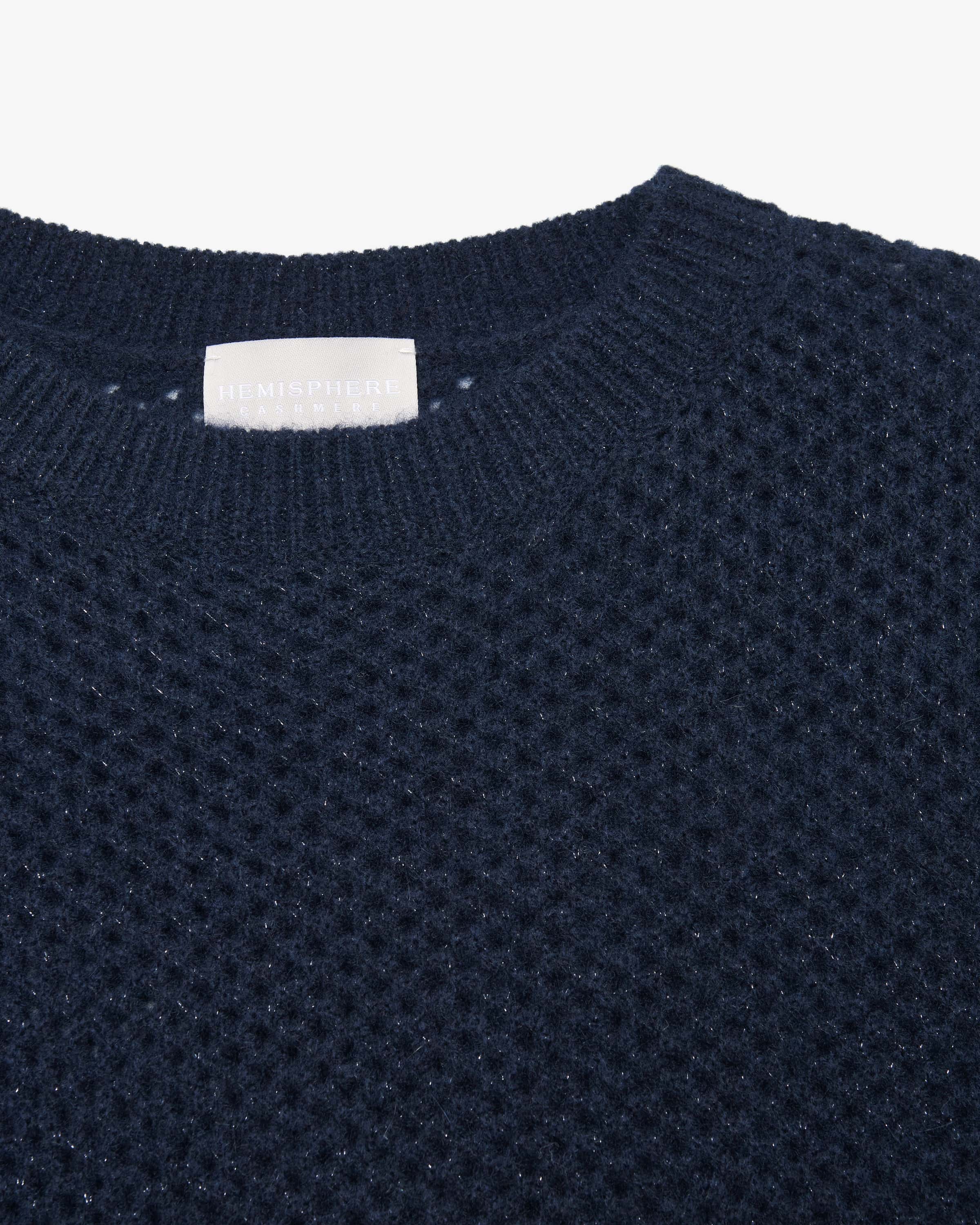 Pullover für Damen von Hemisphere in Navy. Das Modell in Lochstrickmuster überzeugt dank hochwertigem Cashmere-Baumwoll-Mix, welche angenehme Tragemomente bescheren, während klassische Details und die Glitzerfasern das Gesamtbild feminin vollenden.