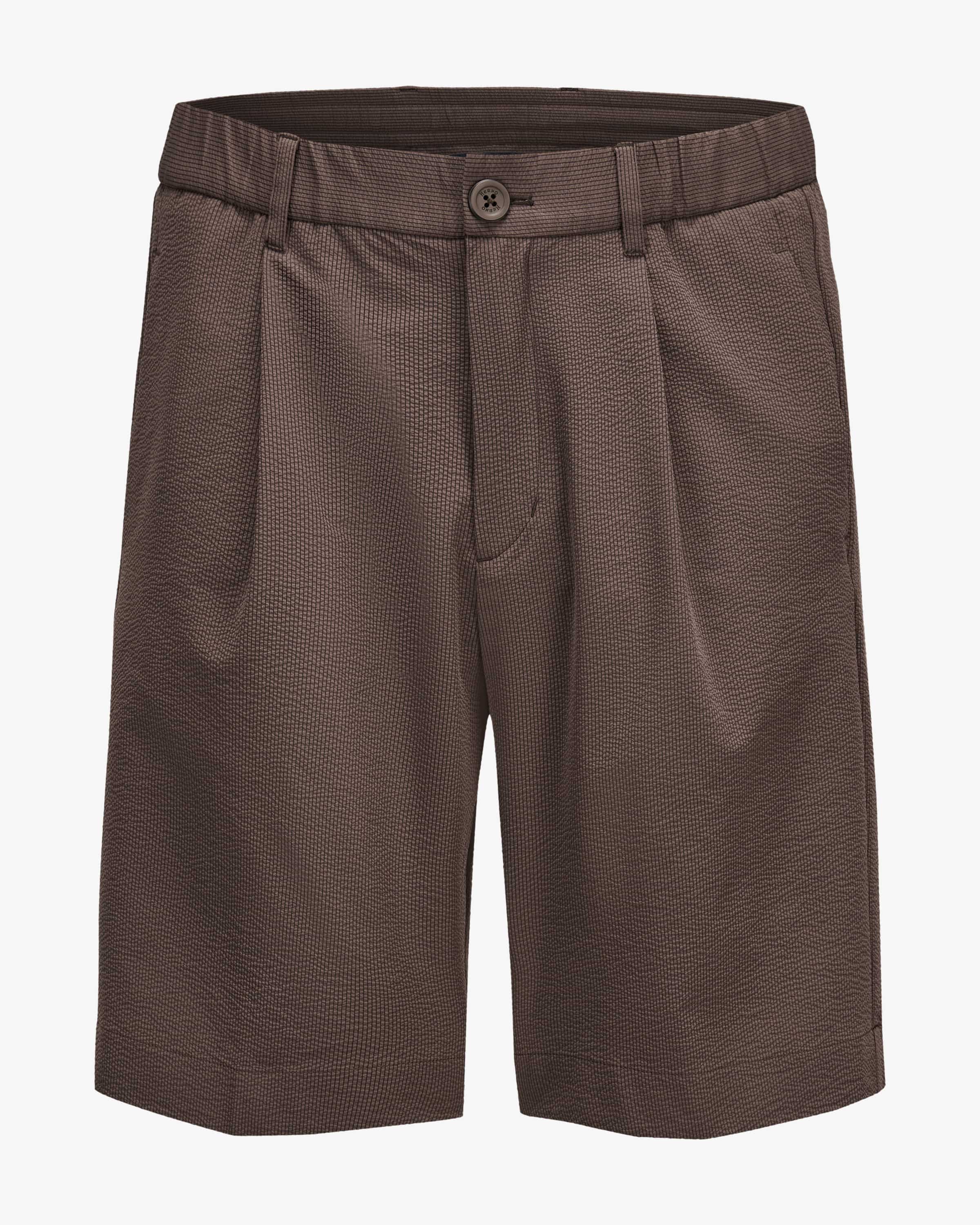 Shorts für Herren von Herno in Braun. Die italienische Marke kombiniert Funktionalität mit Luxus – insbesondere im Bereich hochwertiger Jacken und Mäntel. Mit diesem Bundfalten-Modell hat das Label einen leichten Sommer- Favoriten geschaffen, der durch den elastischen Bund sowie die Seersucker- Qualität mit hohem Tragekomfort und einem legeren Charakter punktet.