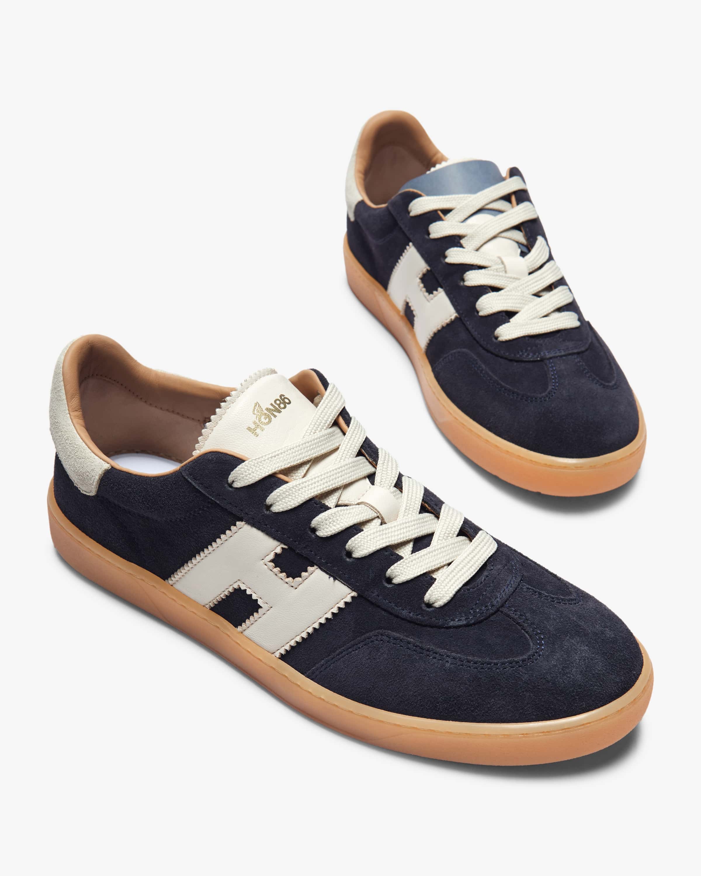 Cool Sneaker für Herren von Hogan in Dunkelblau und Off- White. Das Label legt größten Wert auf hochwertige Verarbeitung und begeistert mit luxuriösem Design. Der Schuh besticht durch das cleane Retro-Design sowie die Verwendung von hochwertigem Veloursleder, während kontrastierende Logo- Details den letzten Schliff verleihen.