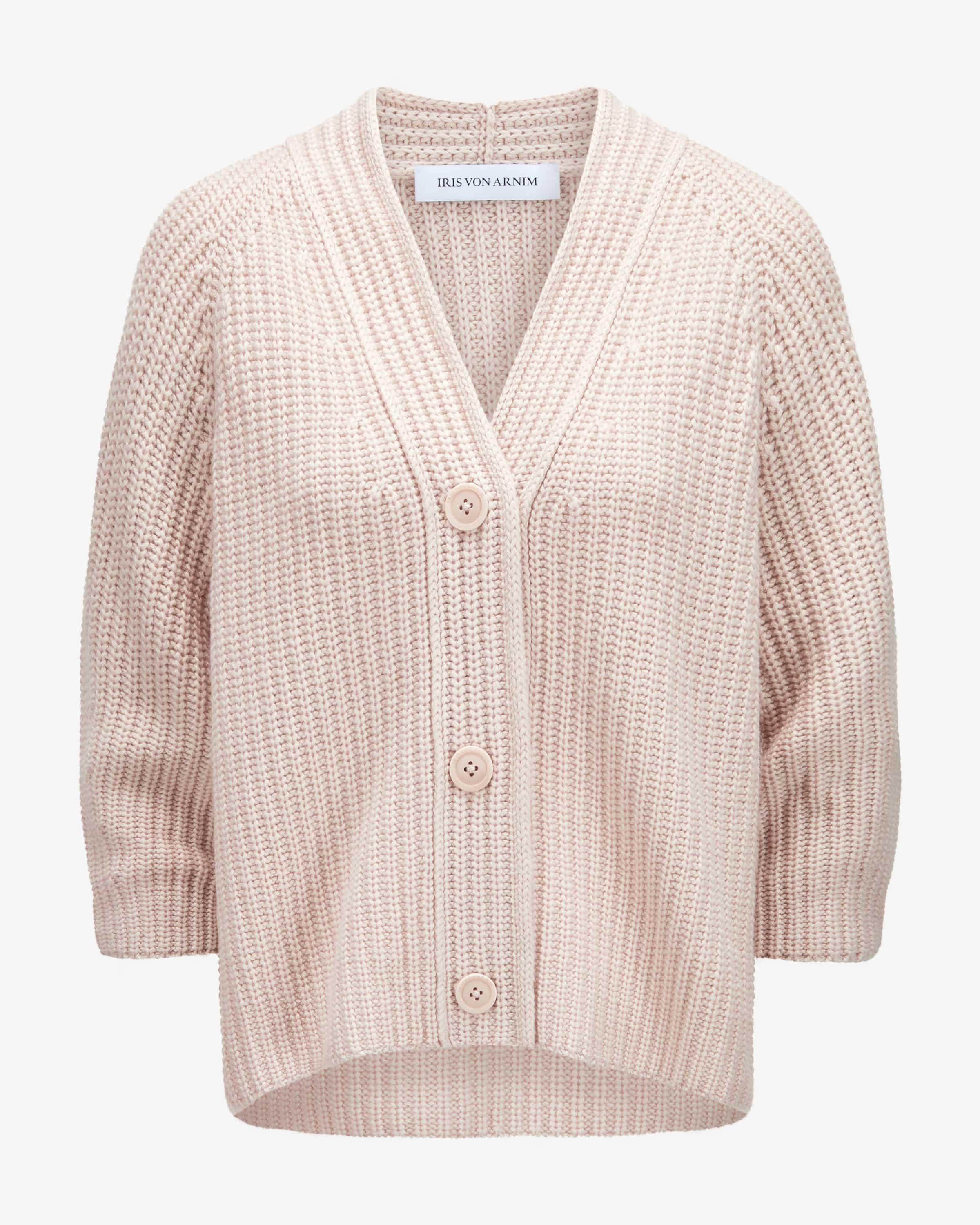 Fallou Button Cashmere- Strickjacke für Damen von Iris von Arnim in Alabaster. Die Hamburger Marke ist eine Ikone des Kaschmirhandwerks – gegründet von Iris von Arnim und bekannt für höchste Qualität und elegante Designs. Auch dieses Modell begeistert mit hochwertiger Cashmere-Qualität in modischer Grobstrick- Verarbeitung, während die legere Passform mit verkürzten Raglanärmeln einen modischen Look schafft.