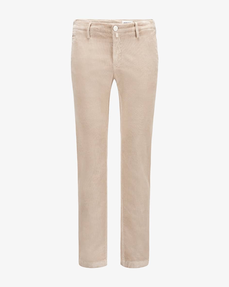Bobby Cordhose Slim Fit für Herren von Jacob Cohen in Sand. Made in Italy - Das Modell überzeugt durch die softe, elastische Cord-Qualität sowohl haptisch als auch optisch und avanciert so zum perfekten Casual-Piece für Ihre Garderobe.