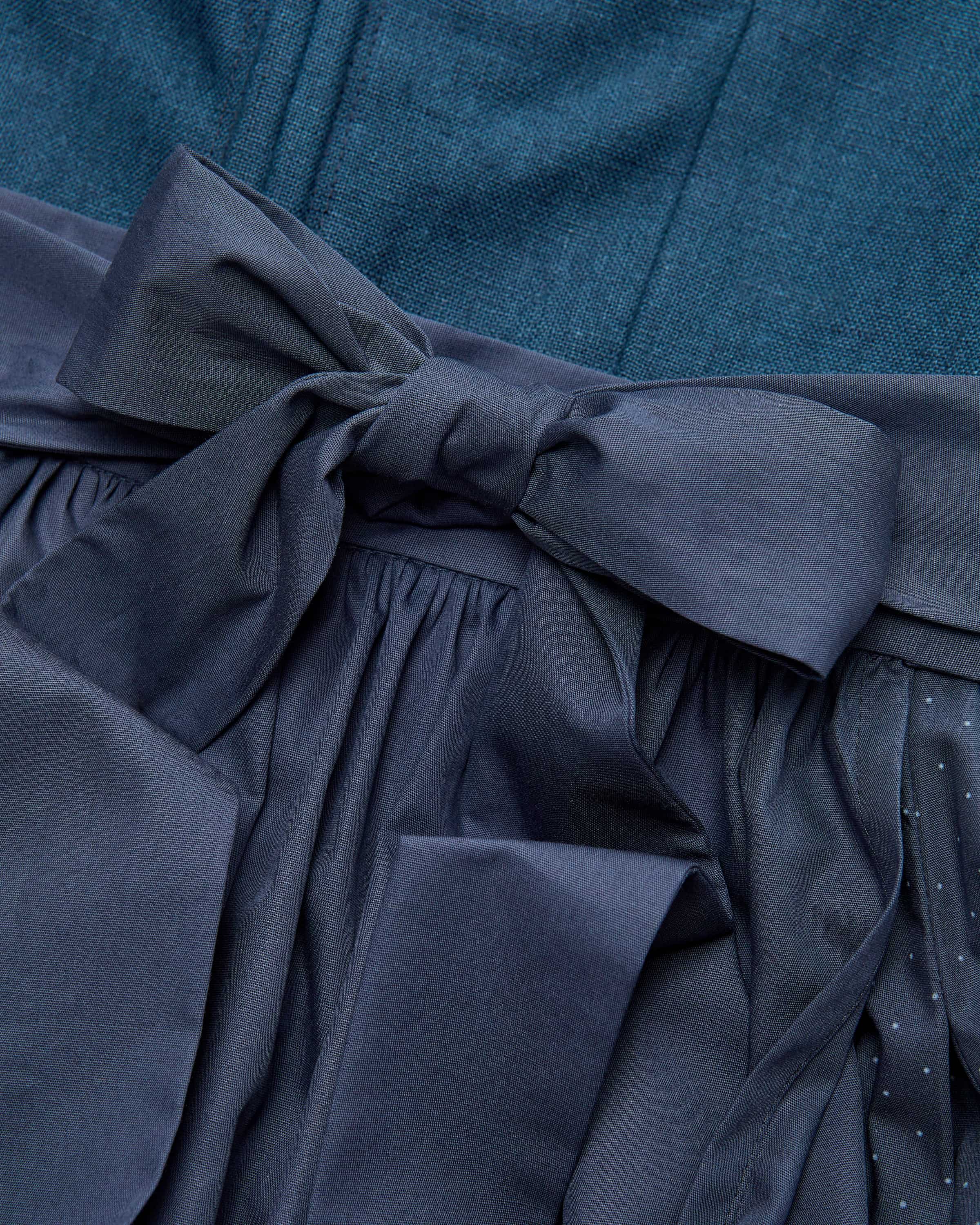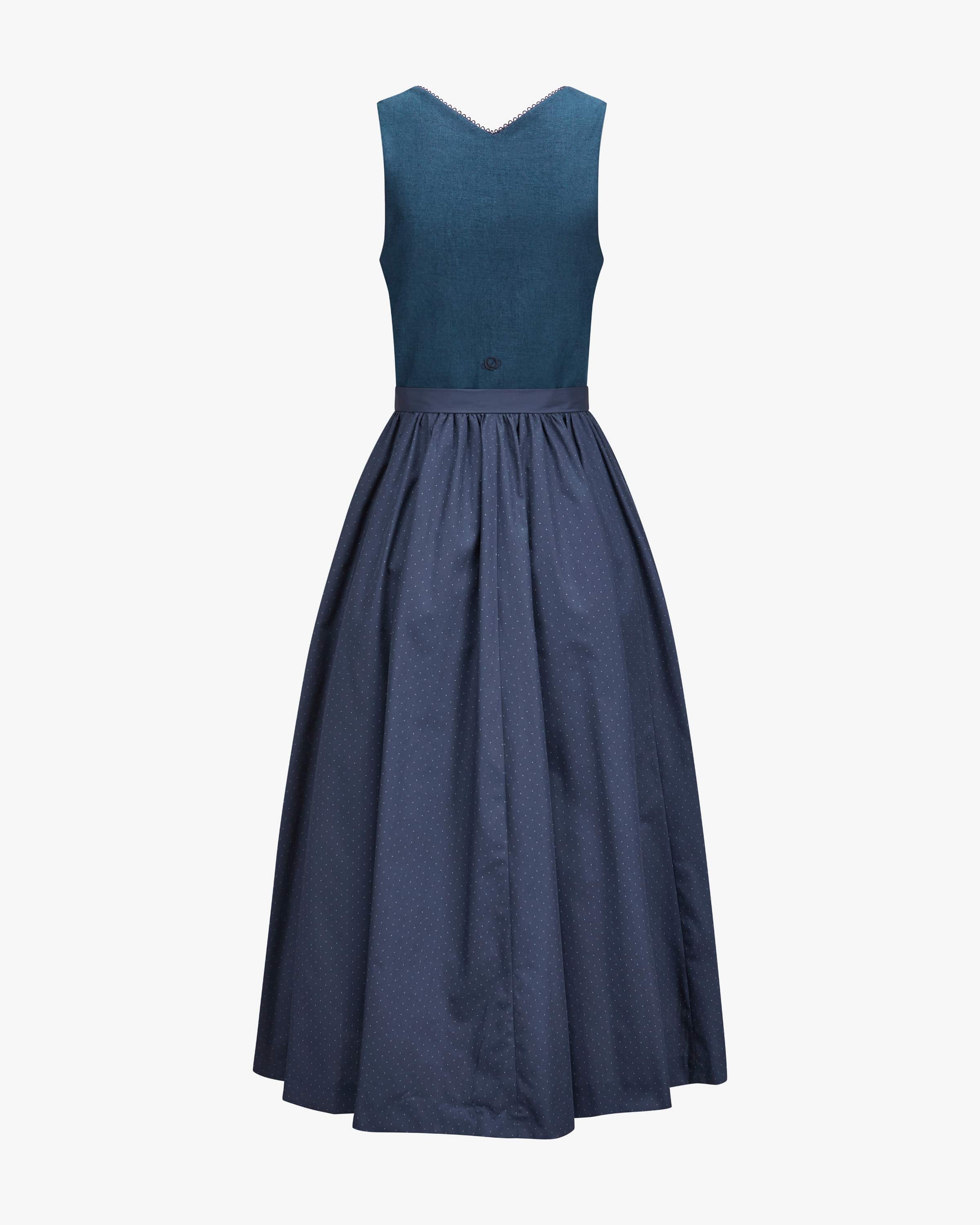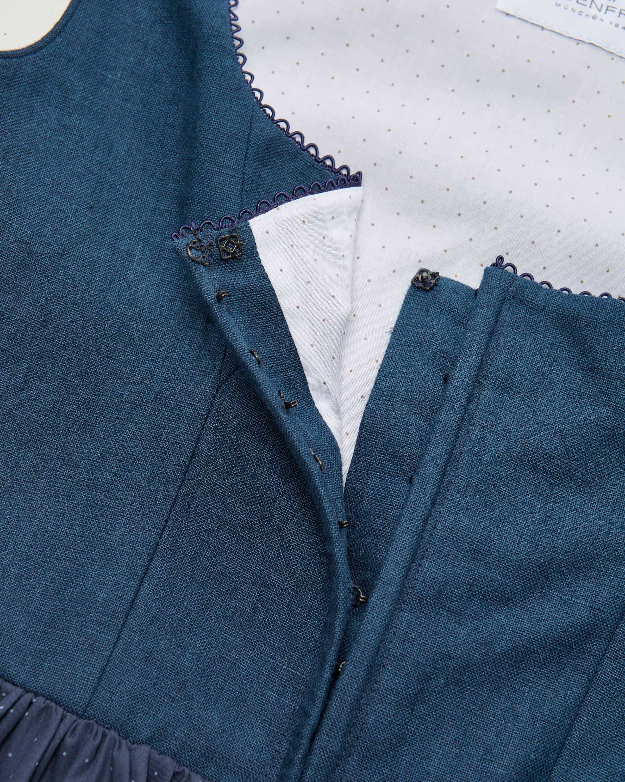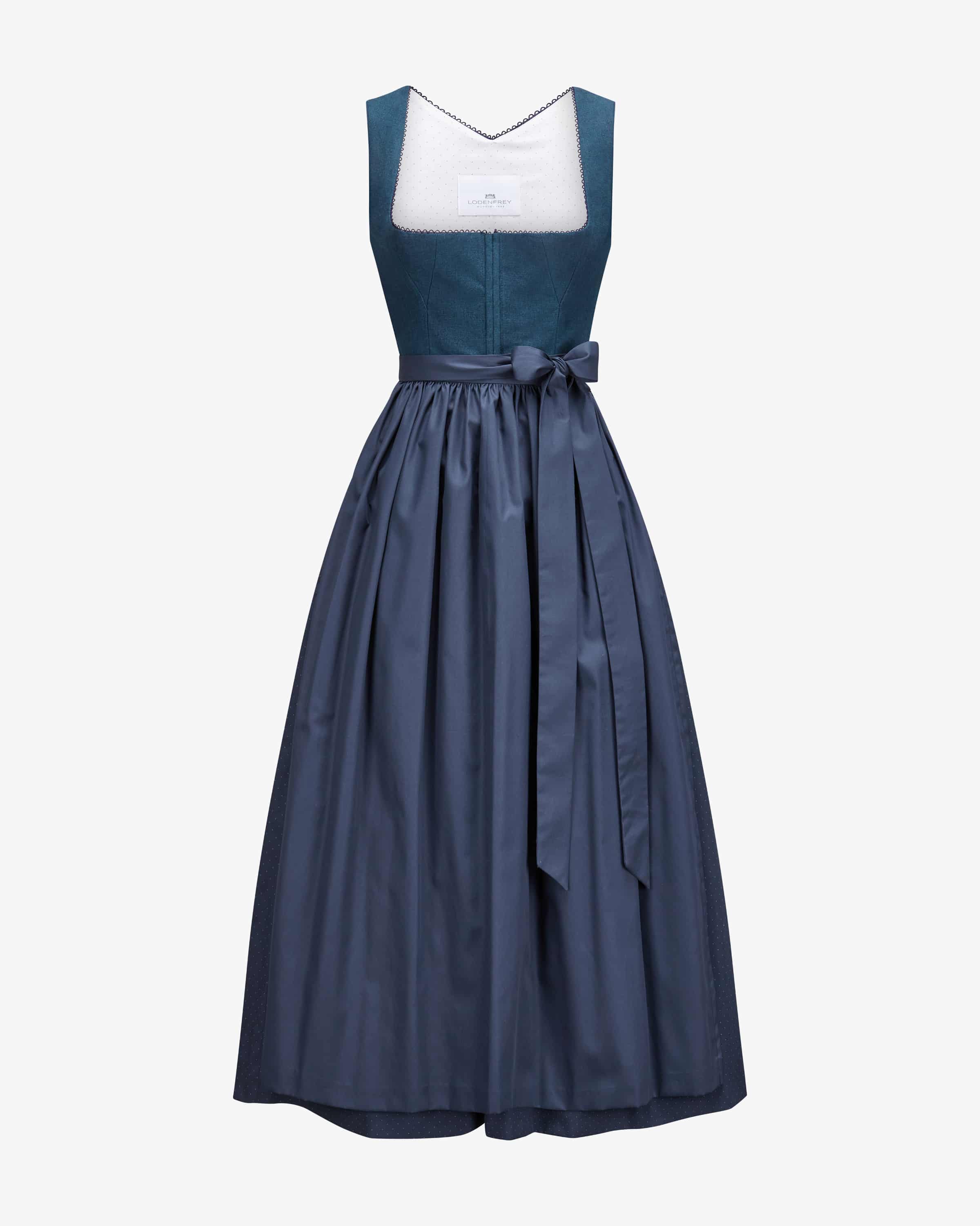 Dirndl lang mit Schürze für Damen von LODENFREY München 1842 in Dunkelblau. Dank der Verwendung von hochwertiger Leinen-Qualität im Mieder und einem feinen Punkte-Muster im Baumwoll-Rock wird ein traditioneller Favorit mit minimalistischem Charme kreiert. Die tonige Schürze rundet das Gesamtbild harmonisch ab.