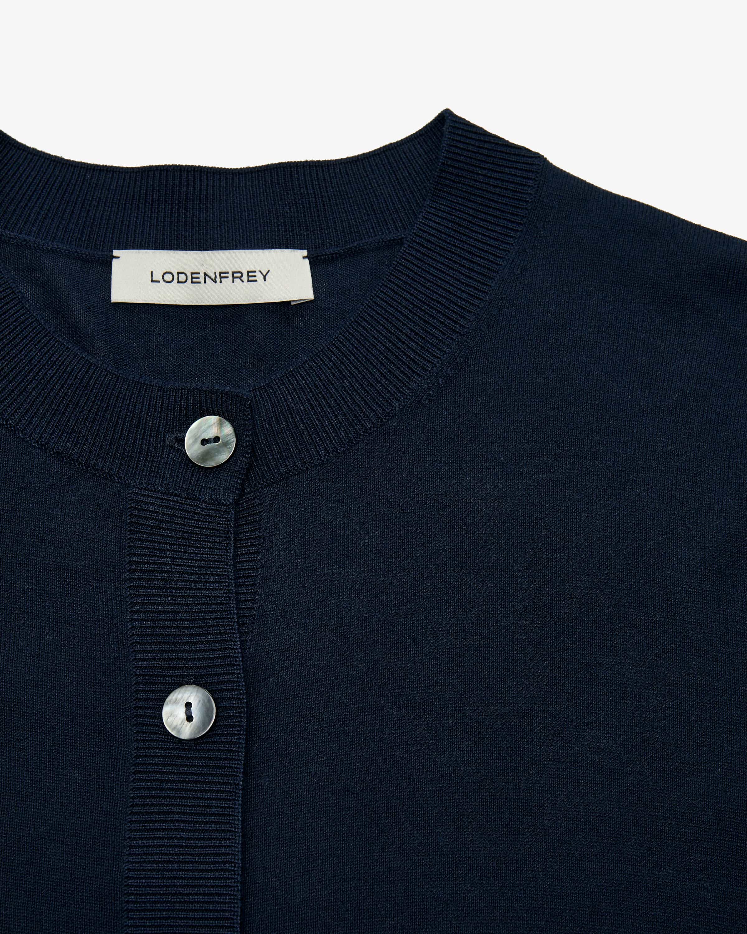 Strickjacke für Damen von LODENFREY in Navy. Gefertigt aus einem hochwertigen Mix aus Seide und Baumwolle besticht das Modell mit einem besonders weichen Griff, während das schlichte Design einen vielseitigen Strick-Favoriten schafft.