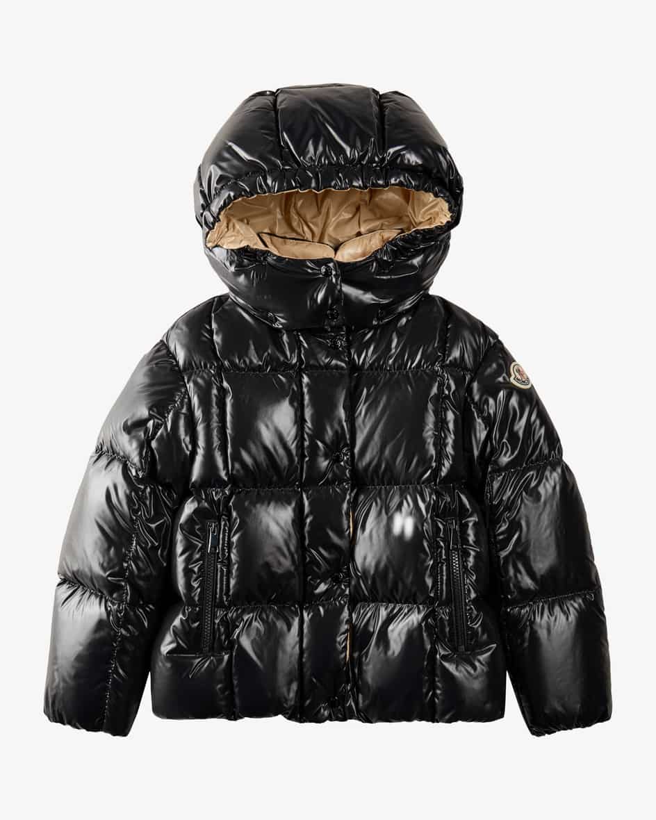 Parana Daunenjacke für Mädchen von Moncler Enfant in Schwarz. In gesteppter Optik und klassischen Details präsentiert sich das Modell in niedlicher Aufmachung, während die hochwertige Daunen-Feder-Füllung die optimale Wärmeisolation verspricht.