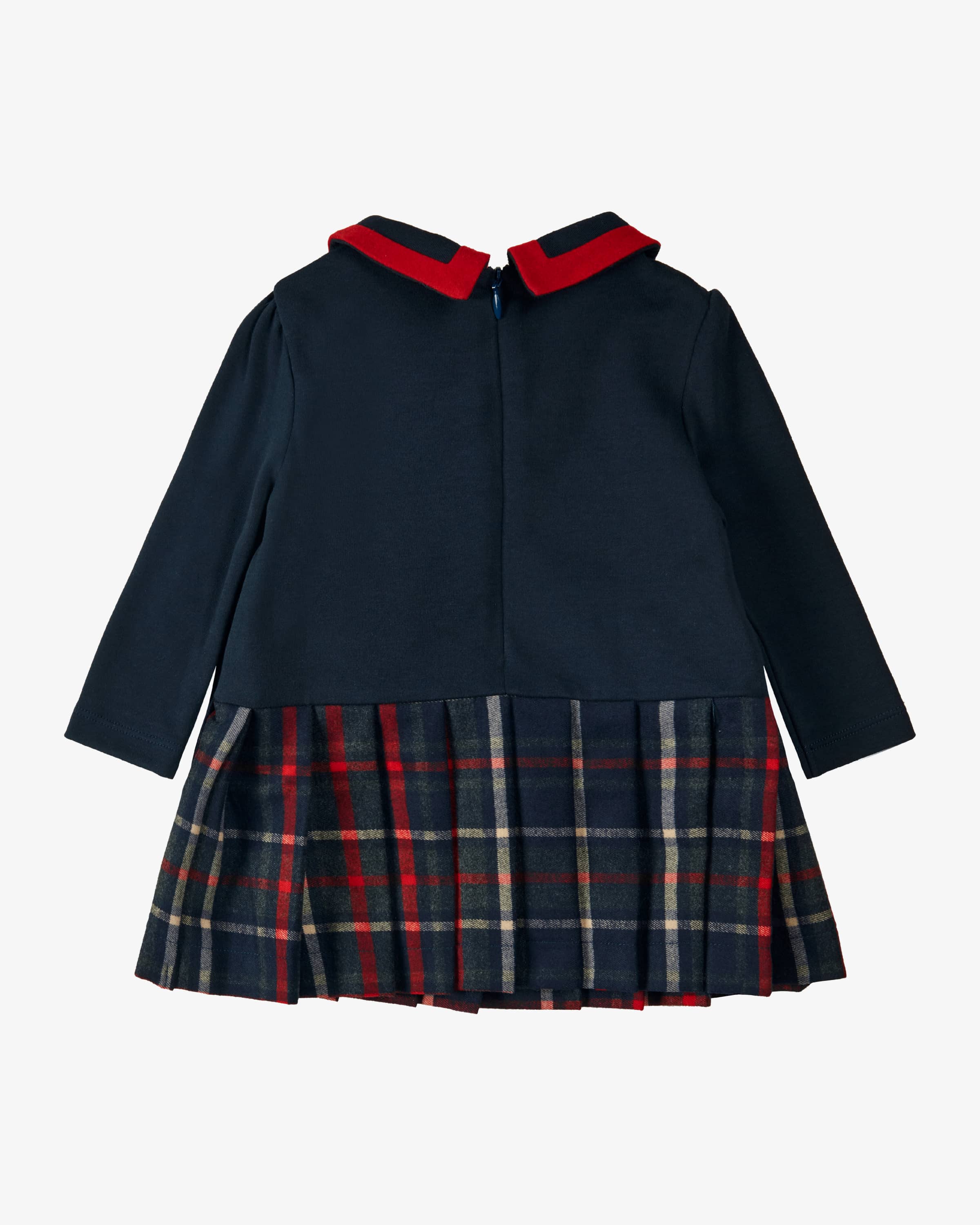 Kleid für Mädchen von Patachou in Navy, Rot und Beige. Das Modell präsentiert sich mit raffiniertem 2-in-1 Look mit angesetztem Faltenrock und niedlicher Schleifen-Applikation, während das klassische Karo-Muster das Design im Brit Chic gekonnt abrundet.