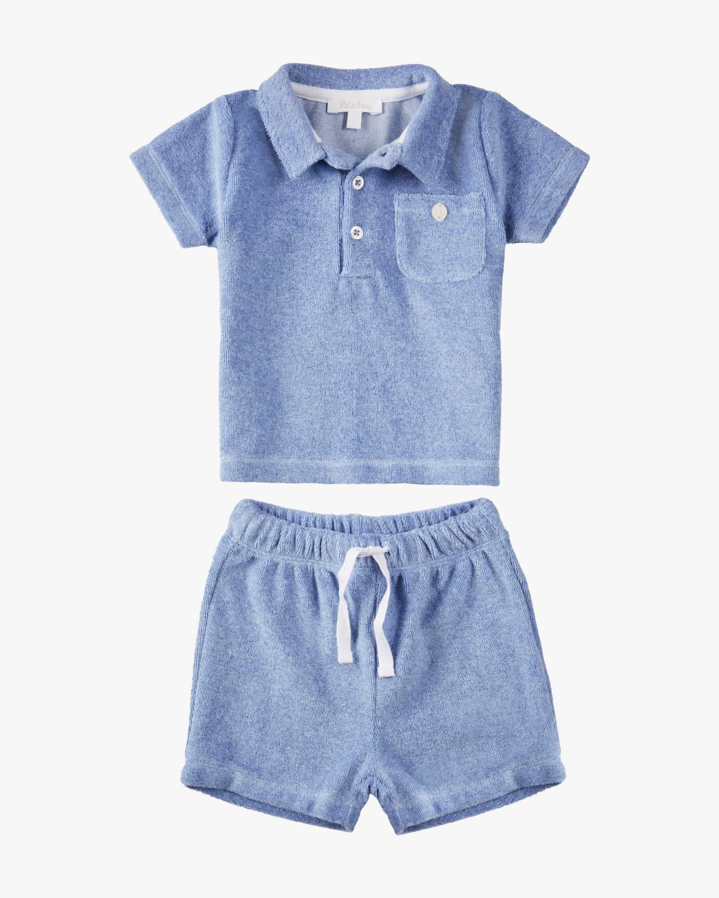 Terry-Zweiteiler für Babys von Patachou in Blau. Das tonale Set besticht dank der Frottee-Qualität in niedlicher Aufmachung und mit angenehmer Haptik, während das legere Design den perfekten Alltagsbegleiter für Ihre Kleinen schafft.