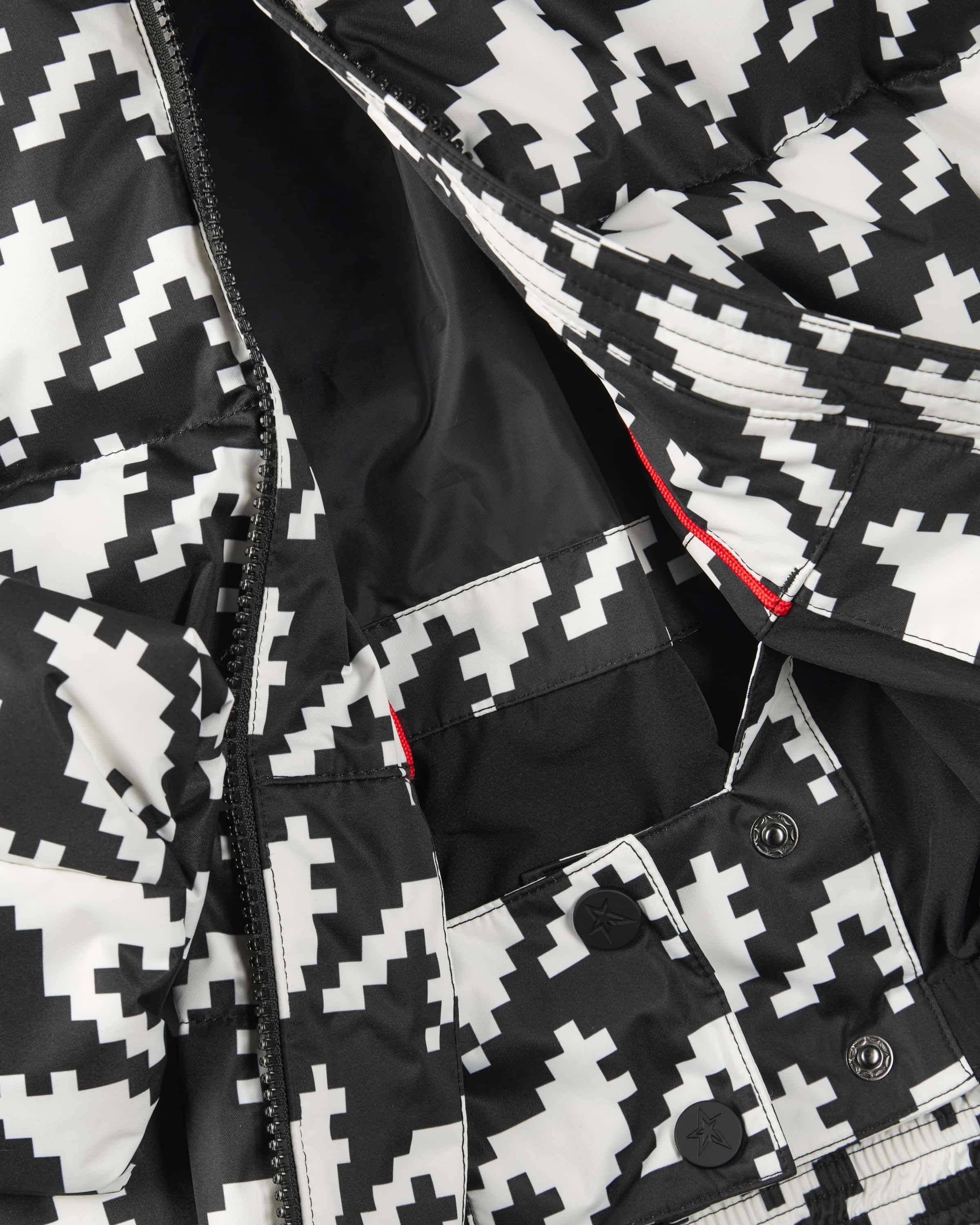 Nuuk Daunenjacke für Kinder von Perfect Moment in Schwarz und Weiß. Gegründet in Chamonix von einem französischen Weltcup-Skifahrer, steht Perfect Moment für exklusive Skiwear mit perfekter Mischung aus Performance und Style. Auch dieses Modell begeistert dank der winddichten EVOTRUTH®-Technologie sowie der hochwertigen Daunen-Feder-Füllung als idealer Winter-Begleiter, welchem das grafische Pixel-Muster den letzten Schliff verleiht.