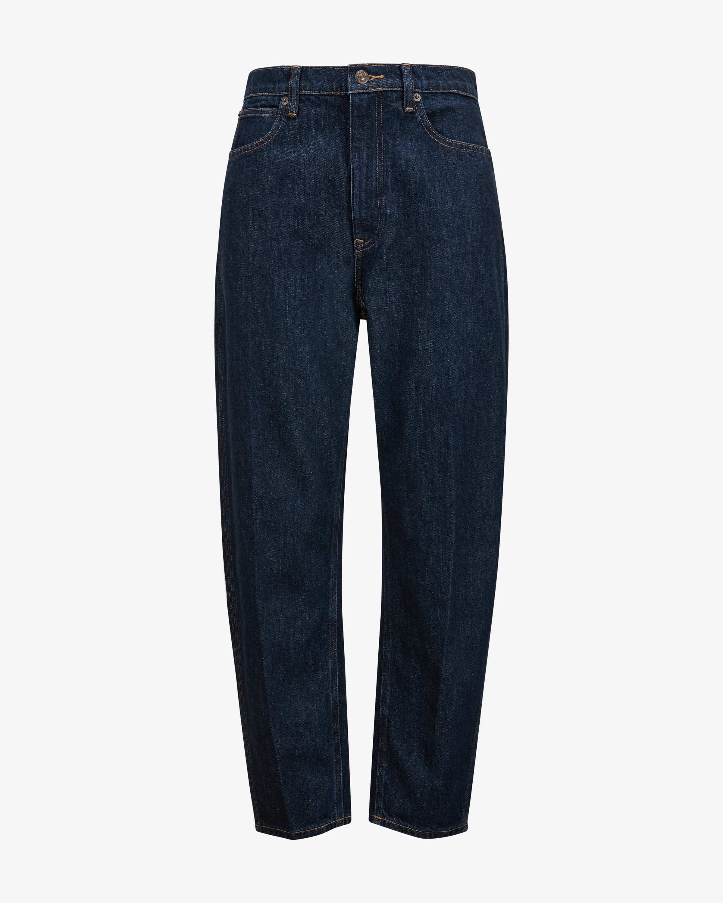 7/8-Jeans Curved Taper für Damen von Polo Ralph Lauren in Dunkelblau. Das Modell aus robuster Baumwolle präsentiert sich in legerer Schnittführung mit verkürztem, zulaufendem Bein, welche durch die Raw-Aufmachung mit Kontrastnähten einen modischen Vintage-Charakter erhält.