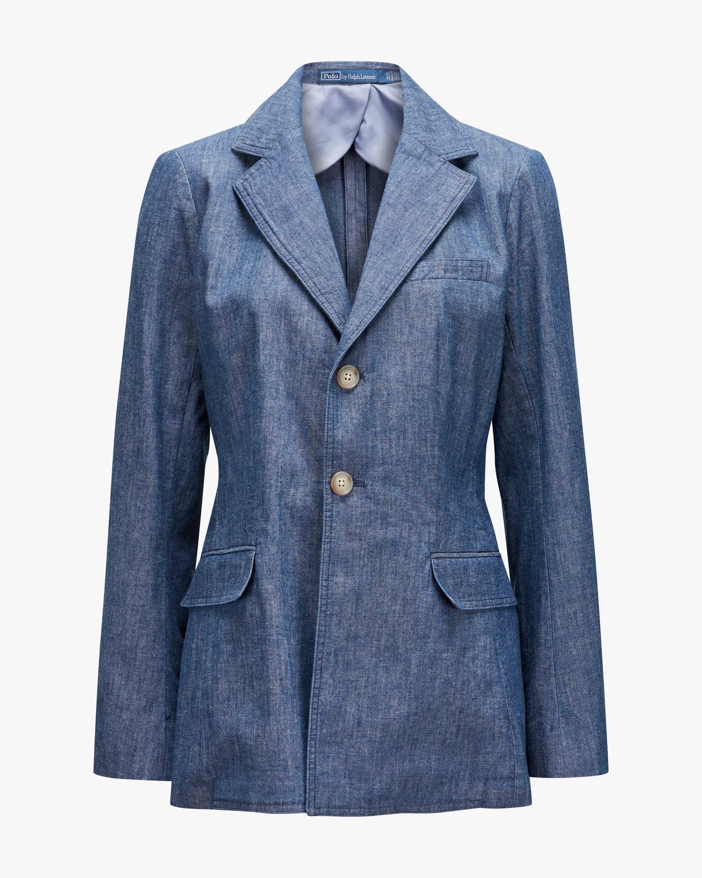 Blazer für Damen von Polo Ralph Lauren in Blau. Das Modell begeistert mit leichtem Material in Denim-Optik, während klassische Details einen vielseitigen Begleiter mit femininem Charme kreieren.