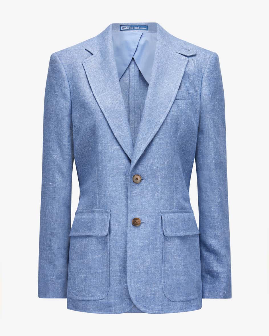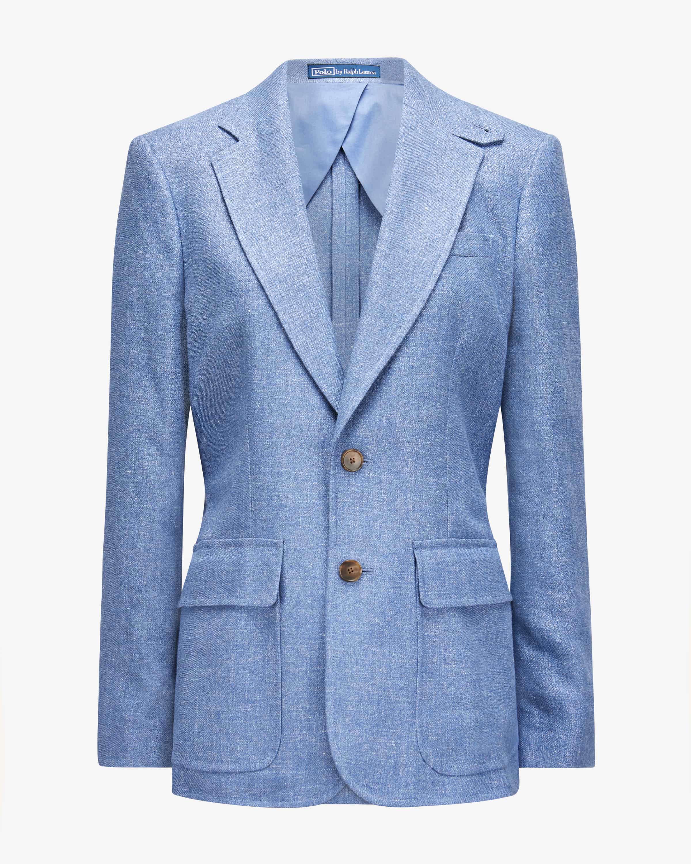 Blazer für Damen von Polo Ralph Lauren in Azur. Das Modell in melierter Aufmachung überzeugt mit hochwertigem Leinen-Baumwoll-Mix, während die Taschen einen sportiven Touch verleihen, runden klassische Details den Gesamtlook harmonisch ab.