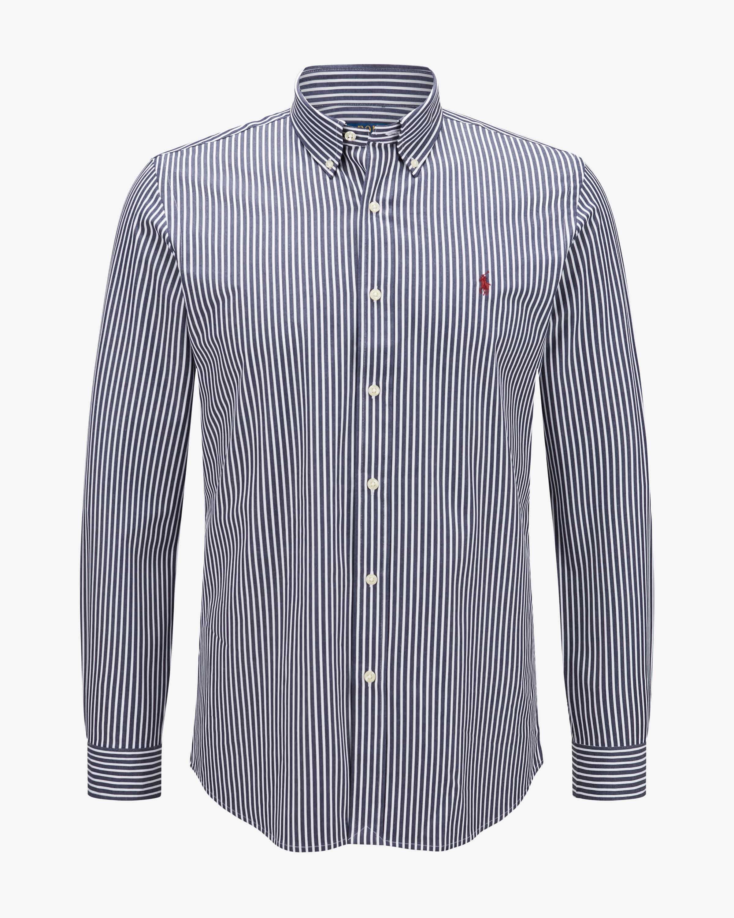 Casualhemd für Herren von Polo Ralph Lauren in Navy und Weiß. Ein Modell, das sich dank des Streifen-Dessins sowie klassischer Details als perfektes Essential für jeden Tag erweist. Die angenehm elastische Baumwoll-Qualität in Kombination mit der legeren Passform sorgt zudem für optimalen Tragekomfort, während die labeltypische Logo-Stickerei das Gesamtbild harmonisch abrundet.