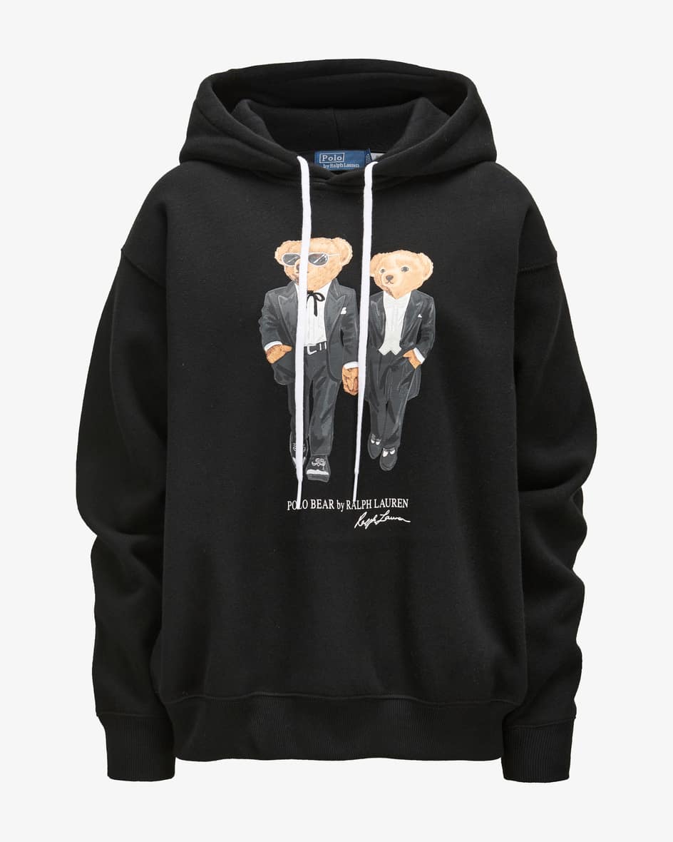 Hoodie für Damen von Polo Ralph Lauren in Schwarz, Hellbraun und Weiß. Eine Ikone des amerikanischen Lifestyles – sportlich, preppy, klassisch. Das Modell präsentiert sich dank der legeren Aufmachung als vielseitiger Begleiter, während der labeltypische und elegante Bären-Print mit raffinierten Stickerei-Details dem Gesamtbild das gewisse Etwas verleiht.