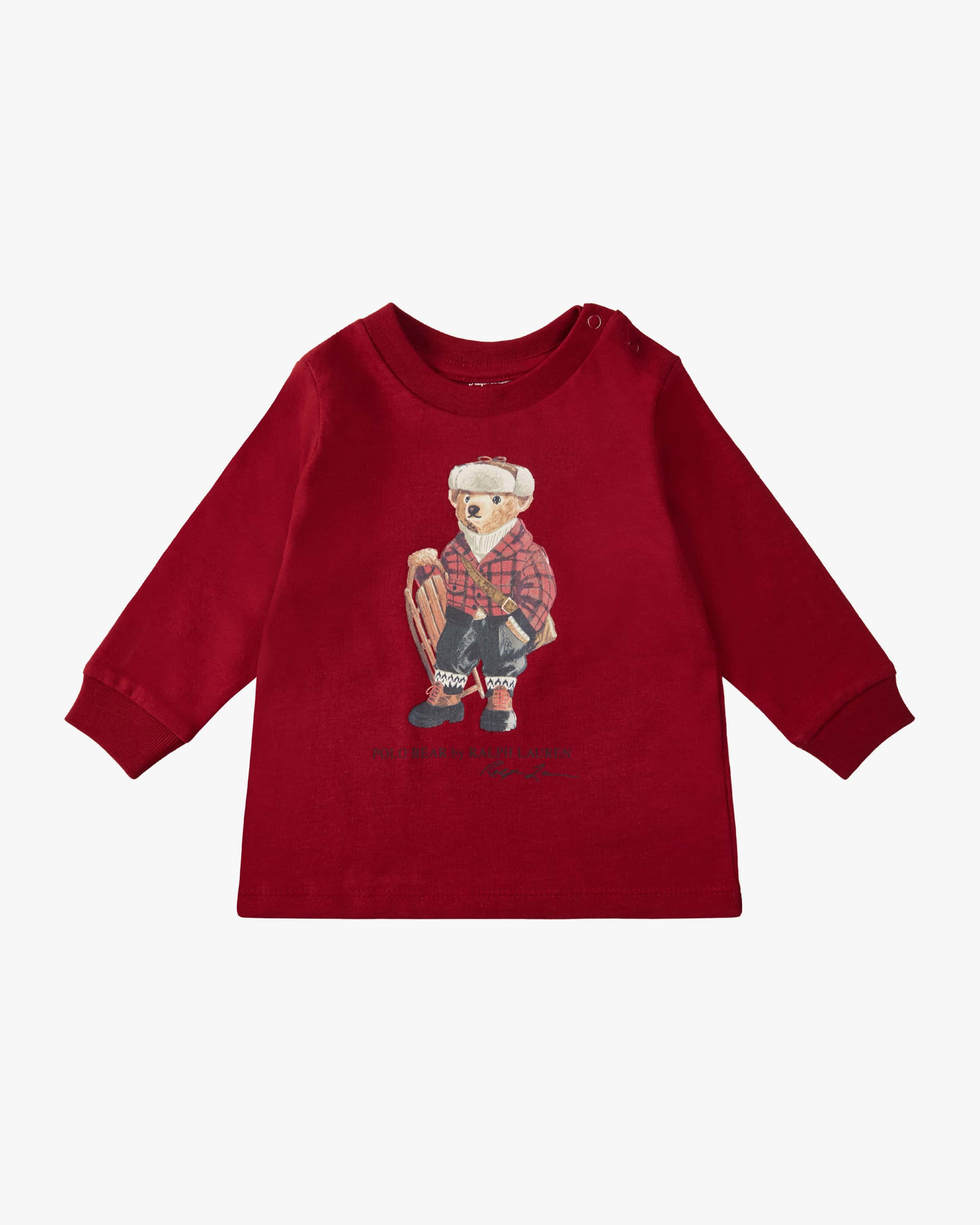 Longsleeve für Babys von Polo Ralph Lauren in Dunkelrot. Das Modell überzeugt mit leichtem Baumwoll-Jersey und sorgt für angenehmen Tragekomfort, während der charmante Polobären-Print im winterlichen Schlittenfahr-Style einen niedlichen Hingucker kreiert.