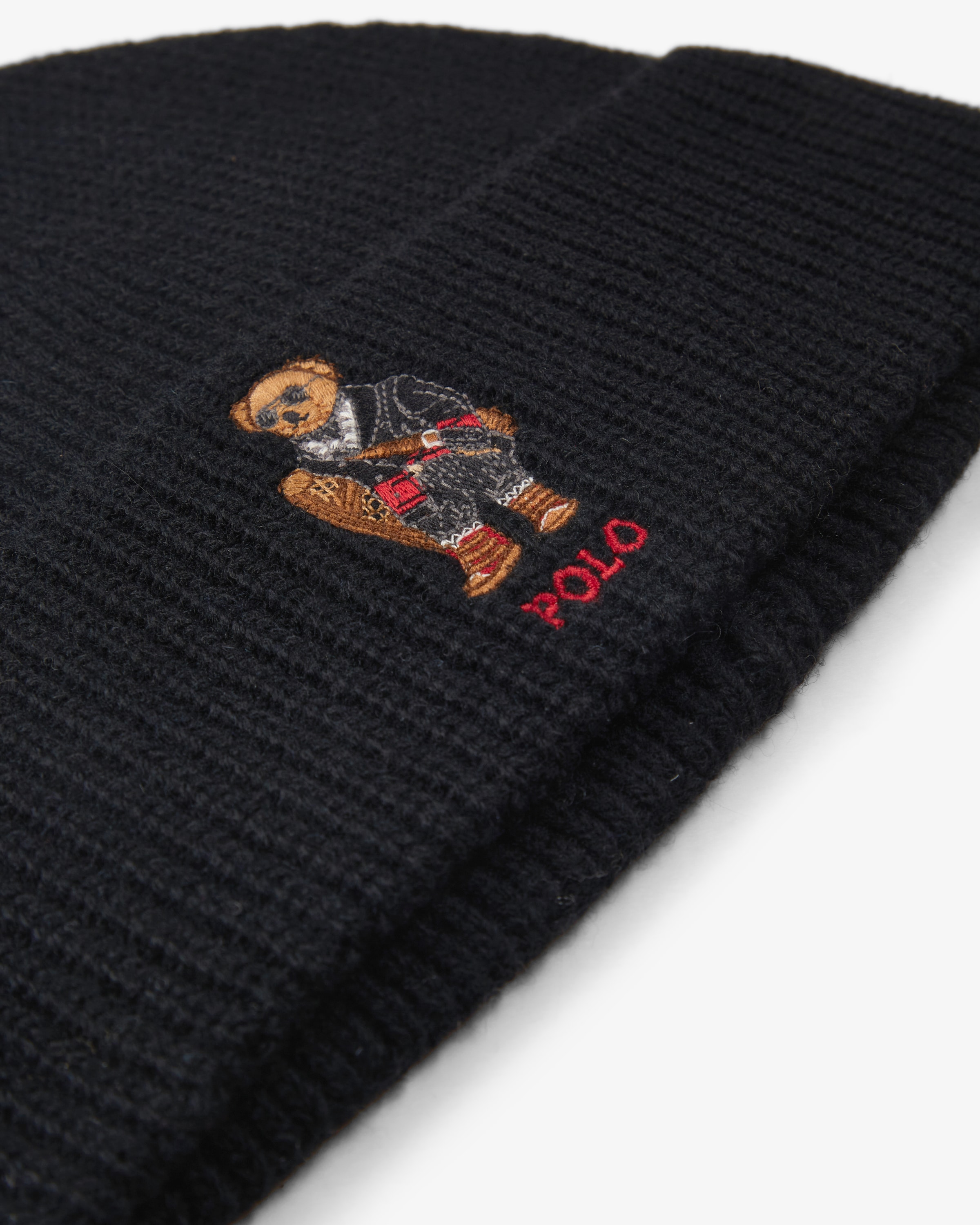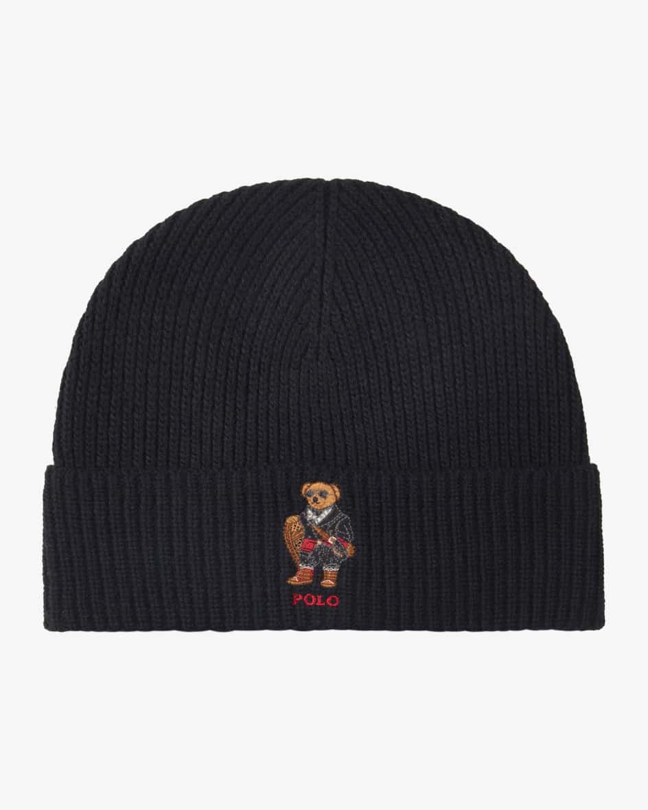 Mütze für Herren von Polo Ralph Lauren in Schwarz. Das Modell aus leichtem Woll- Mix besticht dank der Rippstrick-Qualität als angenehmer Begleiter, während die charmante Polobär-Stickerei dem Look einen besonderen Charakter verleiht.