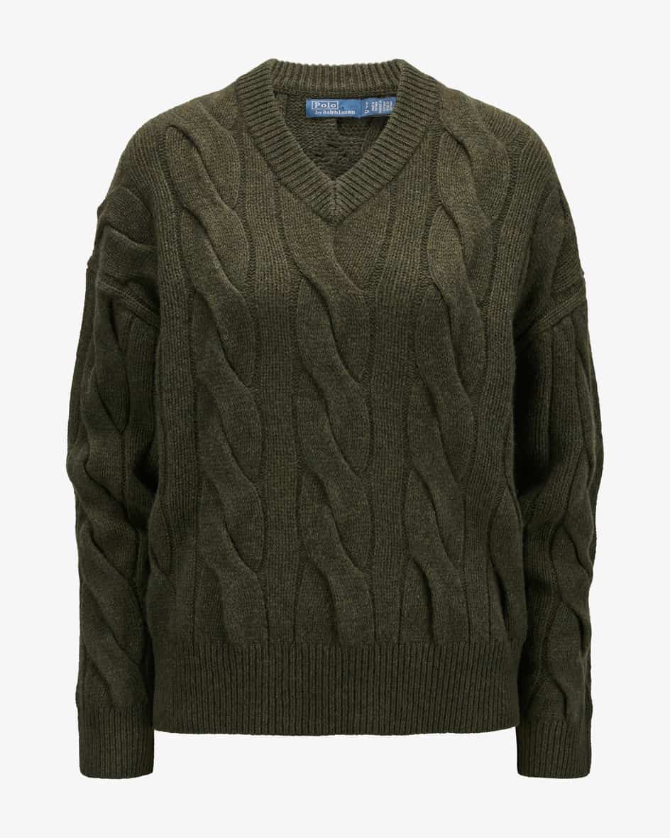 Pullover für Damen von Polo Ralph Lauren in Moosgrün. Qualität, Lifestyle, Authentizität und zeitlose Eleganz – all das zeichnet die Marke Polo Ralph Lauren seit nunmehr 50 Jahren Firmengeschichte aus. Das Modell präsentiert sich dank dem angenehmen Woll-Cashmere-Mix als legerer Favorit, während das breite Zopfstrick-Dessin zusammen mit den Rippstrick-Bündchen den Look sportiv vollenden.