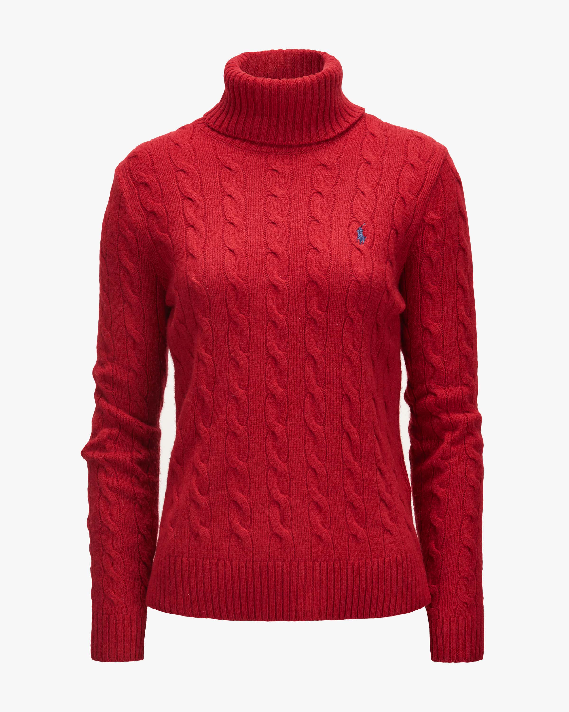 Pullover für Damen von Polo Ralph Lauren in Rot. Dank hochwertiger Woll-/ Cashmere-Qualität überzeugt dieses Modell sowohl haptisch als auch optisch, während das Zopf-Dessin für einen klassischen Look sorgt. Die labeltypische Logo-Stickerei rundet das Gesamtbild modisch ab.