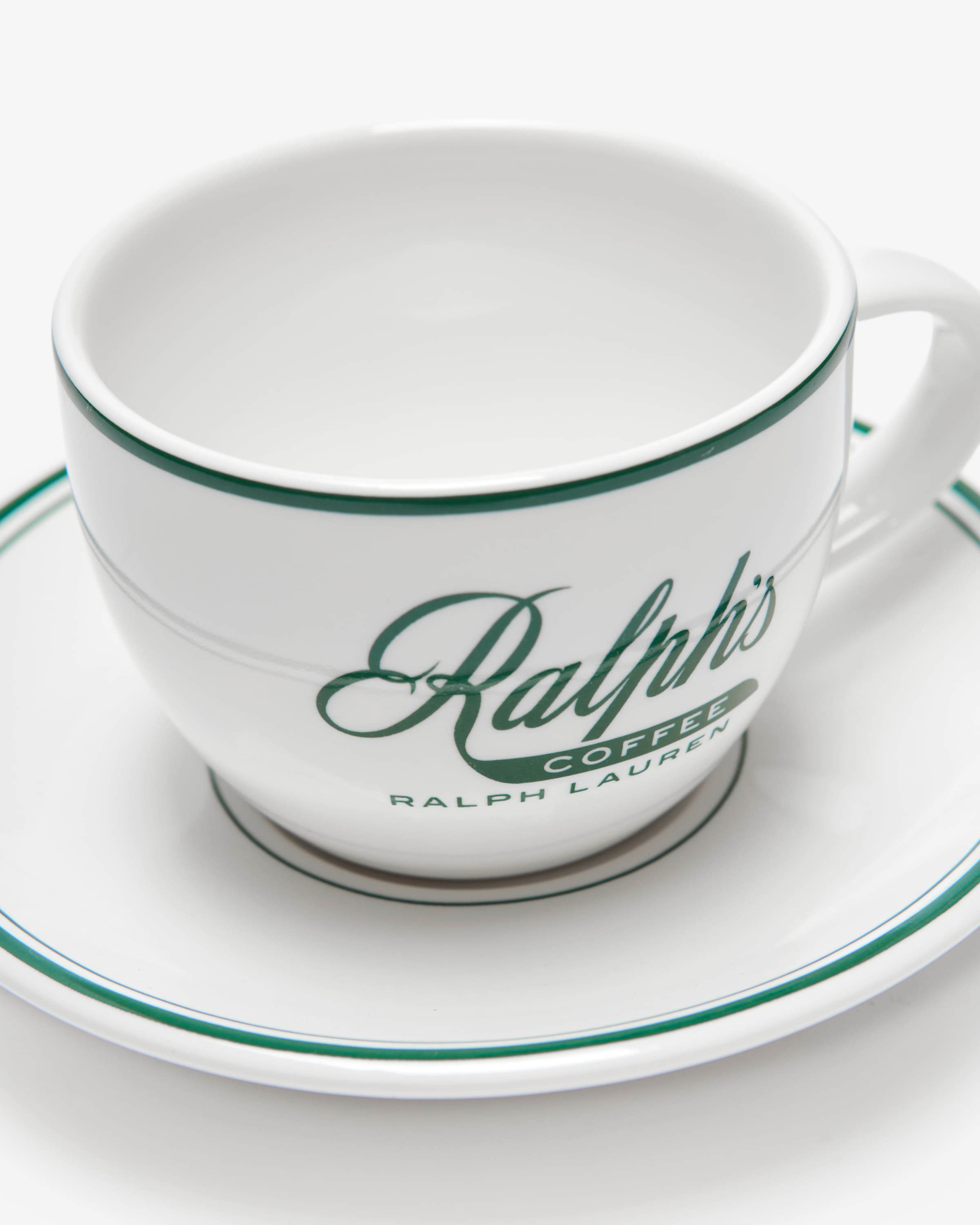 Ralph’s Coffee Tasse und Untertassen-Set von Ralph Lauren Home in Weiß und Grün. Entworfen für den Coffee Shop von Ralph Lauren erweist sich dieses zweiteilige Steingut-Set als originelles Essential für den Frühstückstisch. Ein perfektes Geschenk für alle Kaffeeliebhaber.