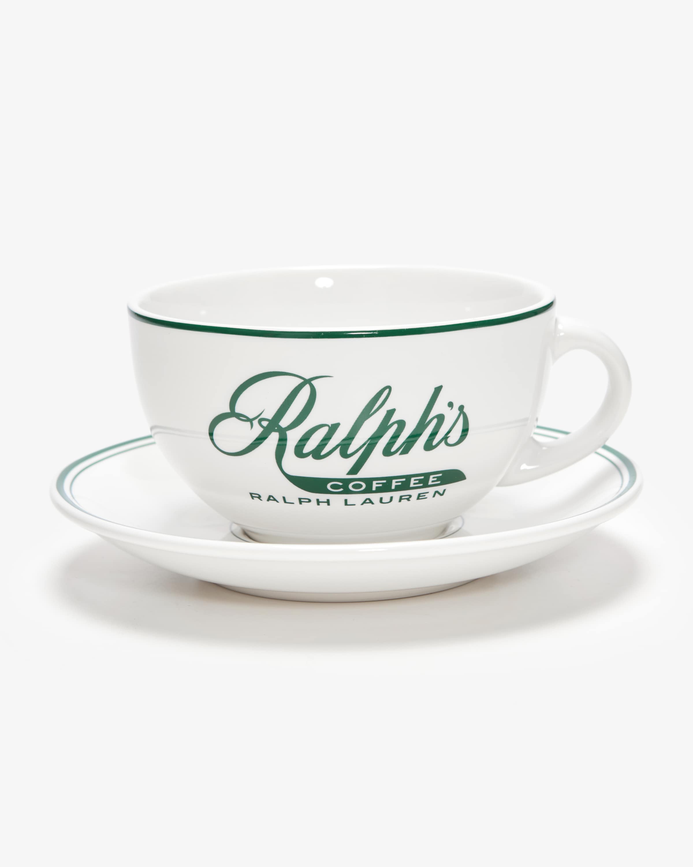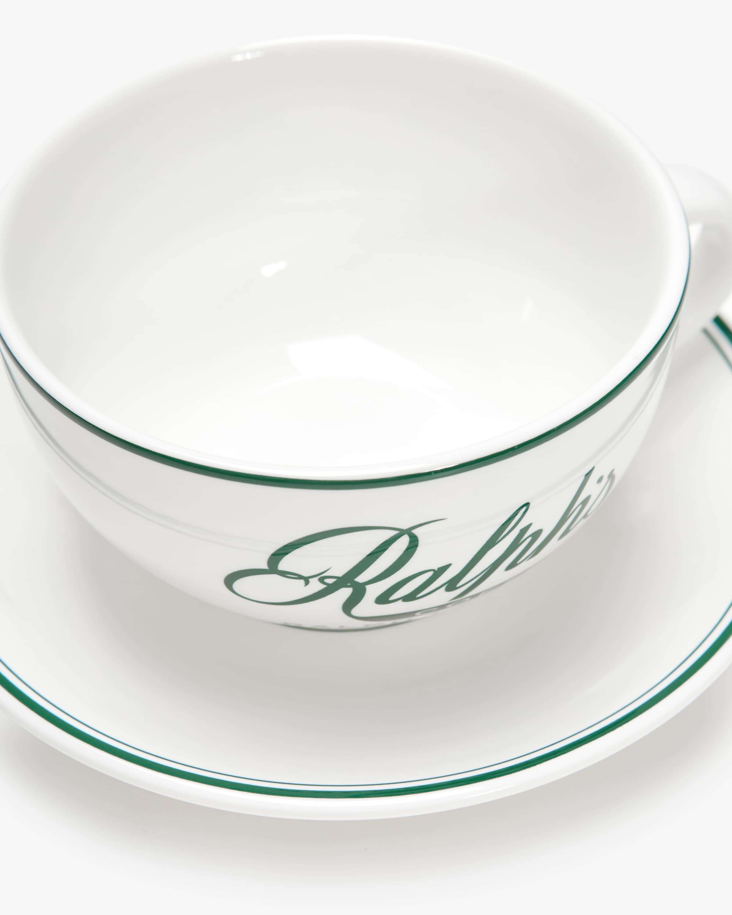 Ralph’s Coffee Tasse und Untertassen-Set von Ralph Lauren Home in Weiß und Grün. Entworfen für den Coffee Shop von Ralph Lauren erweist sich dieses zweiteilige Steingut-Set als originelles Essential für den Frühstückstisch. Ein perfektes Geschenk für alle Kaffeeliebhaber.