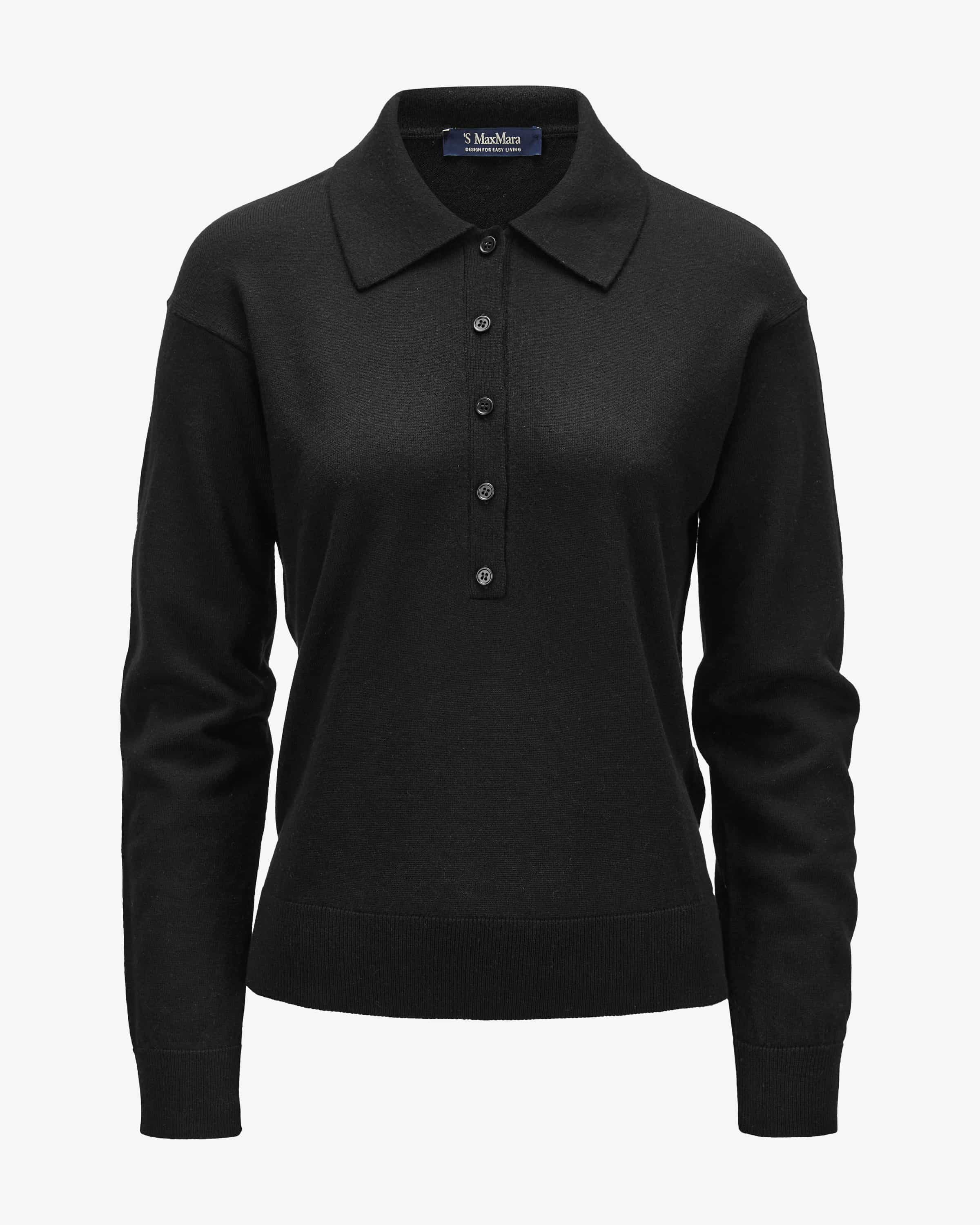 Pullover Frisia für Damen von 'S Max Mara in Schwarz. 'S Max Mara ist die casual-orientierte Linie des italienischen Traditionshauses Max Mara – bekannt für elegante, tragbare Everyday-Pieces. Auch dieses Modell präsentiert sich mit weicher Woll-Qualität, die für angenehmen Tragekomfort sorgt. Der sportive Polokragen rundet den zeitlosen Look gekonnt ab.
