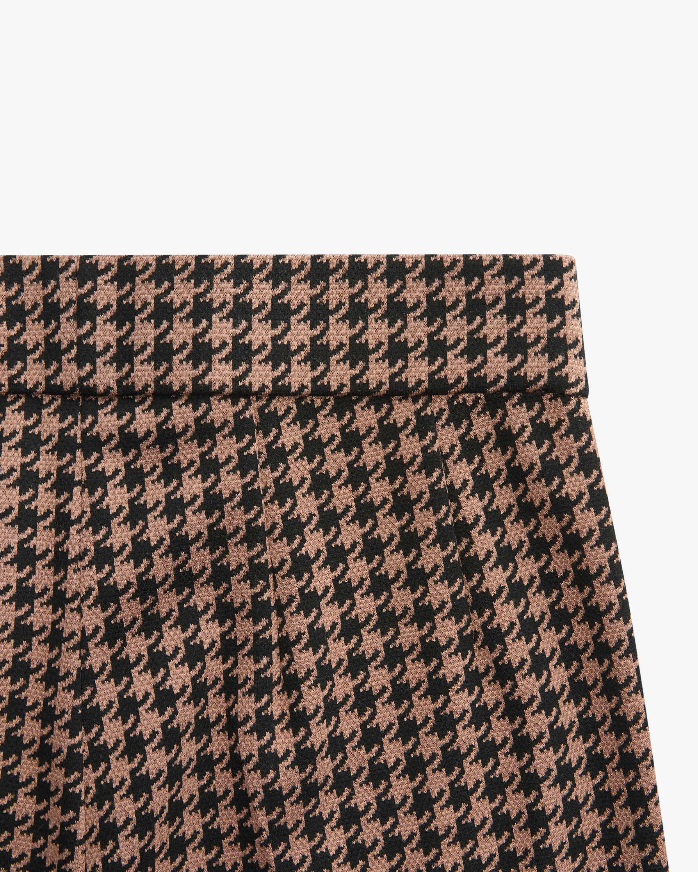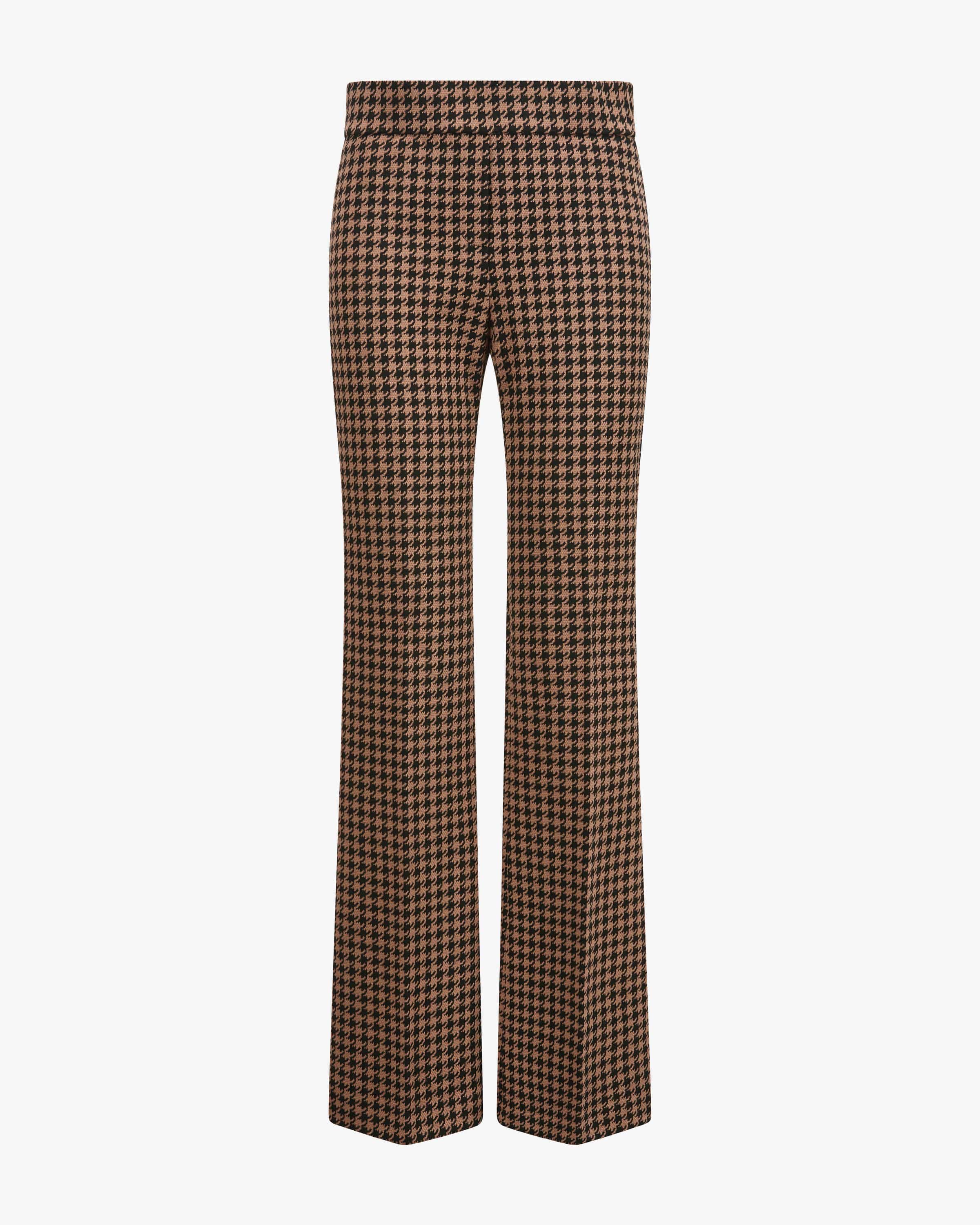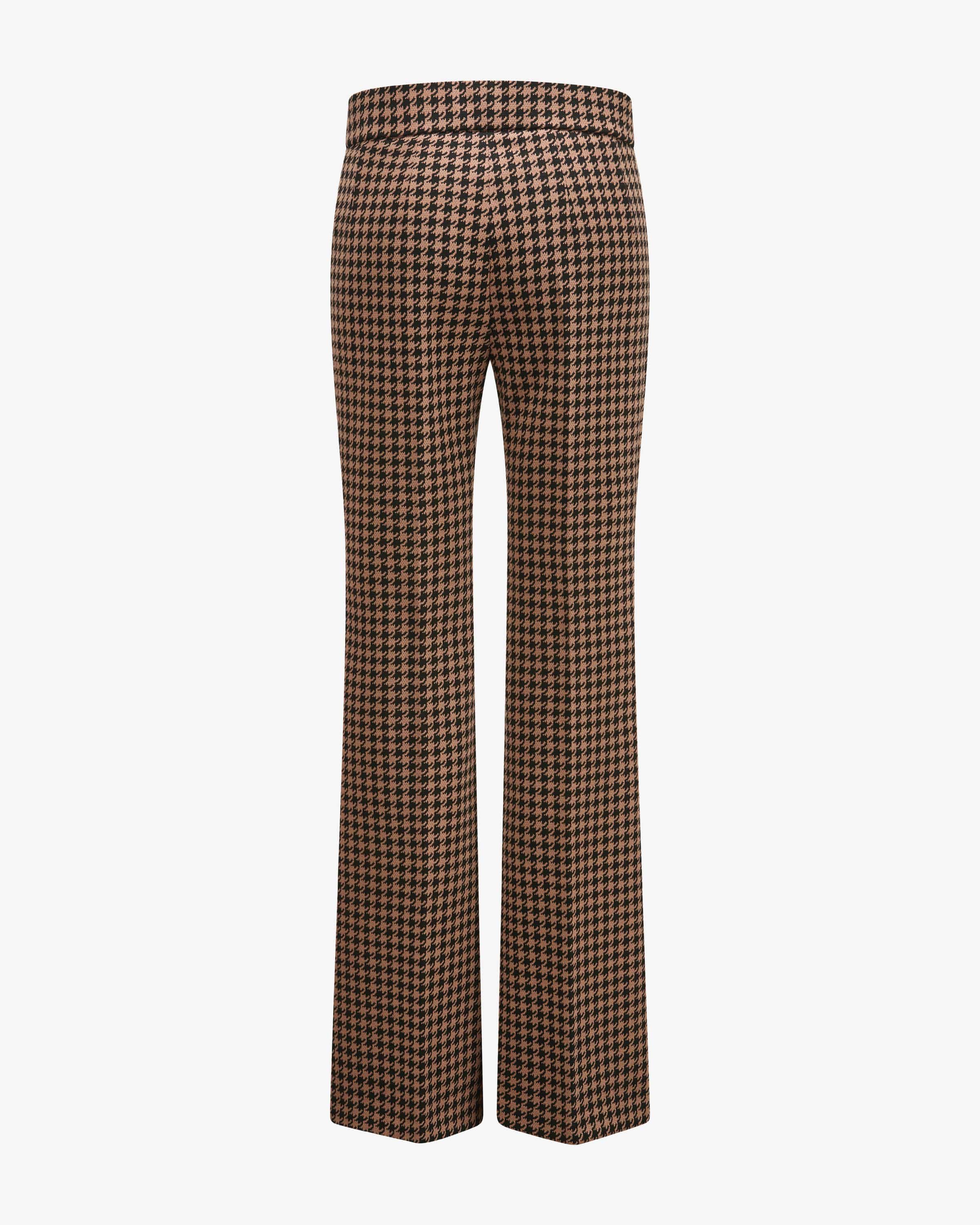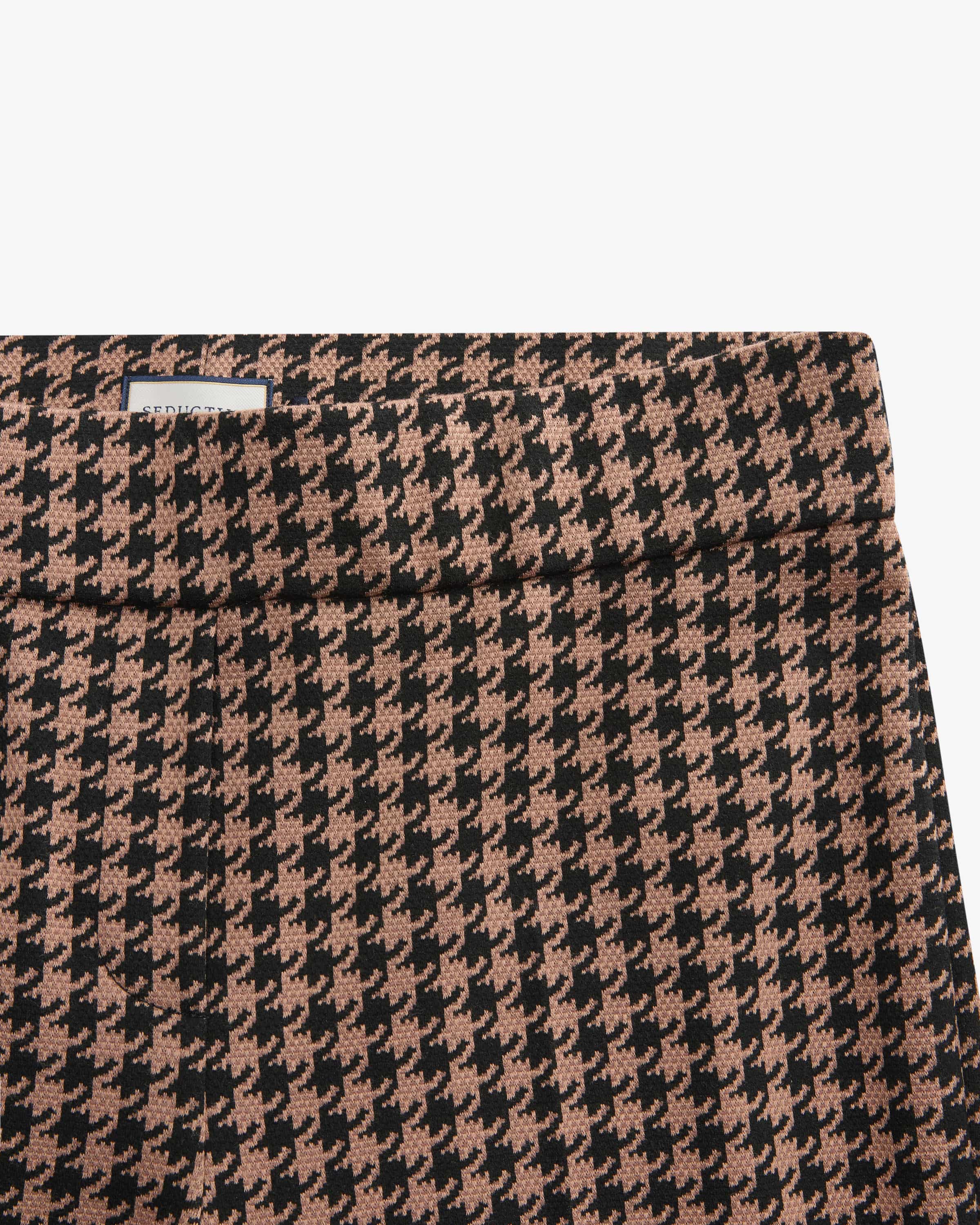 Nanou Hose für Damen von Seductive in Schwarz und Camel. Das Label steht seit 2007 für luxuriöse Hosen mit femininer Silhouette, zeitlosem Design und höchster Qualität. Auch dieses ausgestellte Modell präsentiert sich in eleganter Aufmachung mit stilvollem Hahnentritt-Muster, während die elastische Qualität angenehme Tragemomente garantiert.